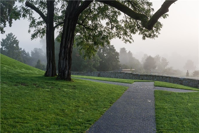 ▼細(xì)膩的地形標(biāo)記出建筑遺址的位置 Subtle topographic interventions reshaped the original building strunctures