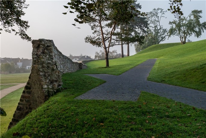 ▼小路連接了阿爾滕明斯特僧院古墻遺跡 The paths link to the original wall of the Altenmünster
