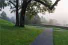 ▼遺址大部分區(qū)域?yàn)榭諘绲木G地 The area is now mainly a large green space with very few remains
