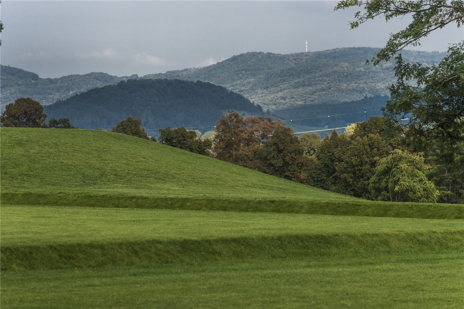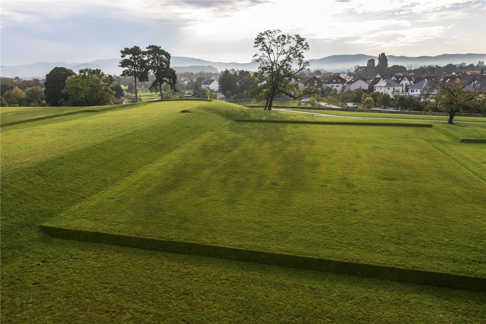 場(chǎng)地中零星散落著洛爾施修道院建筑群遺跡,包括著名的卡洛林式門廳(即國王大廳)、教堂遺址,以及更早之前的阿爾滕明斯特僧院遺跡,如今它只剩下一大片綠地,古建殘存甚少。2009年舉辦的一場(chǎng)跨學(xué)科競(jìng)賽提出,通過連接景觀和建筑來重新設(shè)計(jì)該地區(qū),同時(shí)要求嚴(yán)格遵守古跡保護(hù)的規(guī)定。