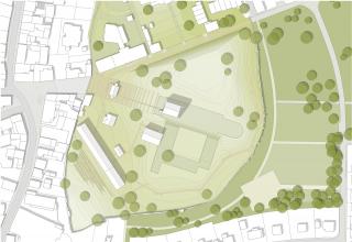 Parts of the area are the fragments of Lorsch Abbey’s complex with the famous Carolingian gate hall, the church ruins as well as the traces of the preceding Altenmünster, which is mainly a large green space with very few remains. In 2009 an interdisciplinary competition aimed at redesigning the area by connecting landscape and architecture while strictly following the regulations of monument preservation.