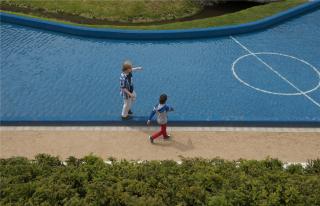 The Aqua Soccer installation pushes the boundaries of traditional play activities in order to revitalize an old game.