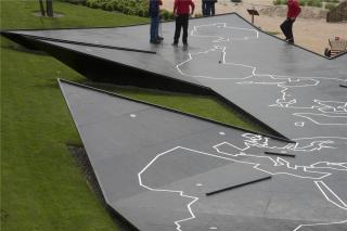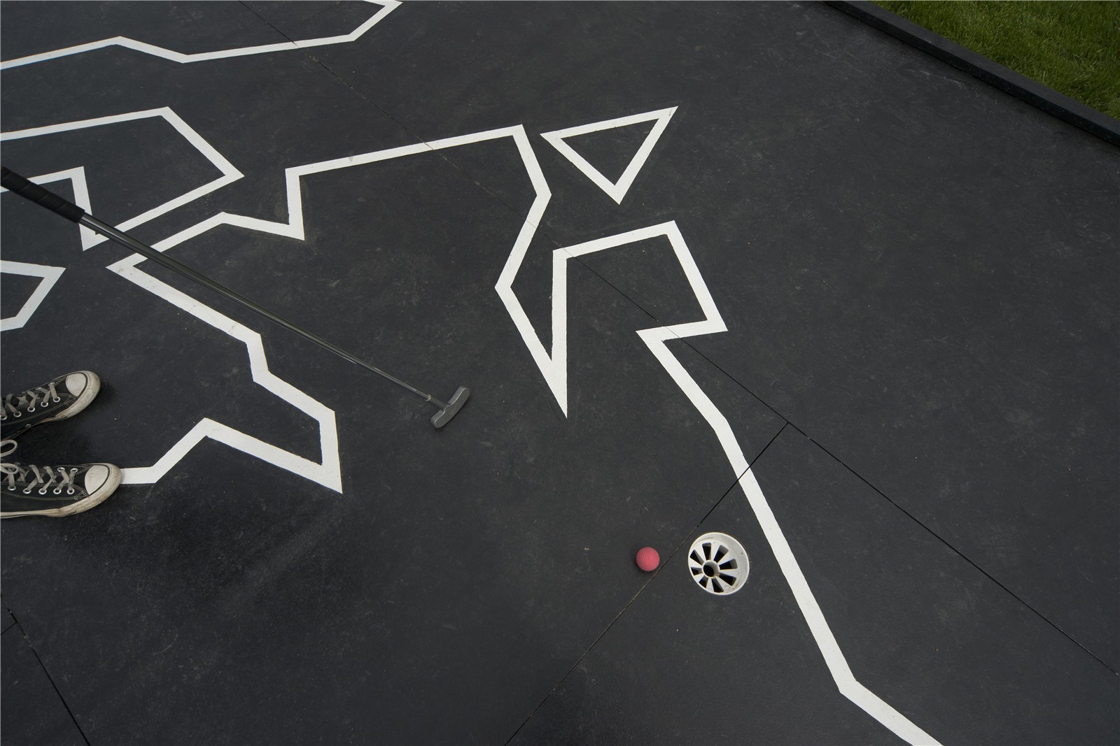 漢堡國際園藝展73號花園中的戴美克森高爾夫就是P.Bongni設計的迷你高爾夫球場的翻版:展開的戴美克森式世界地圖是一塊迷你高爾夫游戲場地。地圖所畫的各大洲和國家被玩家逐個攻破和征服。與真正的高爾夫類似,水元素區(qū)域是游戲中的障礙點。折疊三角形的“世界地圖”設施由加固的輕質(zhì)混凝土支柱支起,懸停在草坪區(qū)內(nèi)。