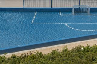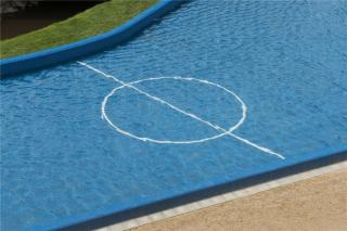 傳統(tǒng)足球比賽是在平坦、有直角的草坪上進行,對著對方寬大的球門進行直射。而水上足球設施中,足球的場地條件受到限制,過去所有簡單的東西現(xiàn)在都變得非常困難:快速移動很困難,直射幾乎是不可能,球門不再相互對準,比賽場地被大幅縮小。最重要的是,球場表面由橡膠制成,并灌滿了水。