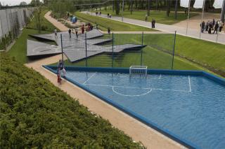 The Aqua Soccer Installation at the 2013 Hamburg International Garden Show aspires to take a conventional game and introduce it to new a context. The Aqua Soccer installation offers a fun twist on the traditional sport.