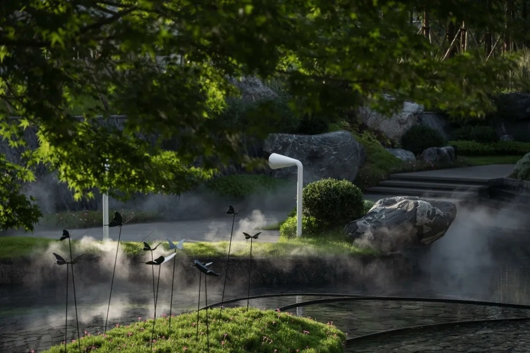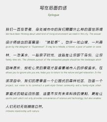 回到景觀,設計師希望以一種自然的,野趣的場景與建筑的現代感有所碰撞,設計更希望能探索人類對未來人居環(huán)境的需求,高聳的白墻,冰冷的科技感是永遠替代不了一縷陽光和一片綠蔭帶來的溫暖。