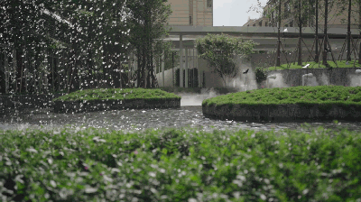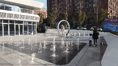 互動:腳踩噴泉,地面隱形腳踩裝置,行人走上觸發(fā)噴泉