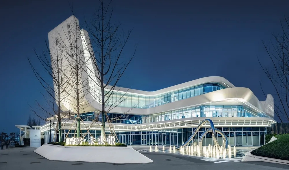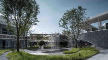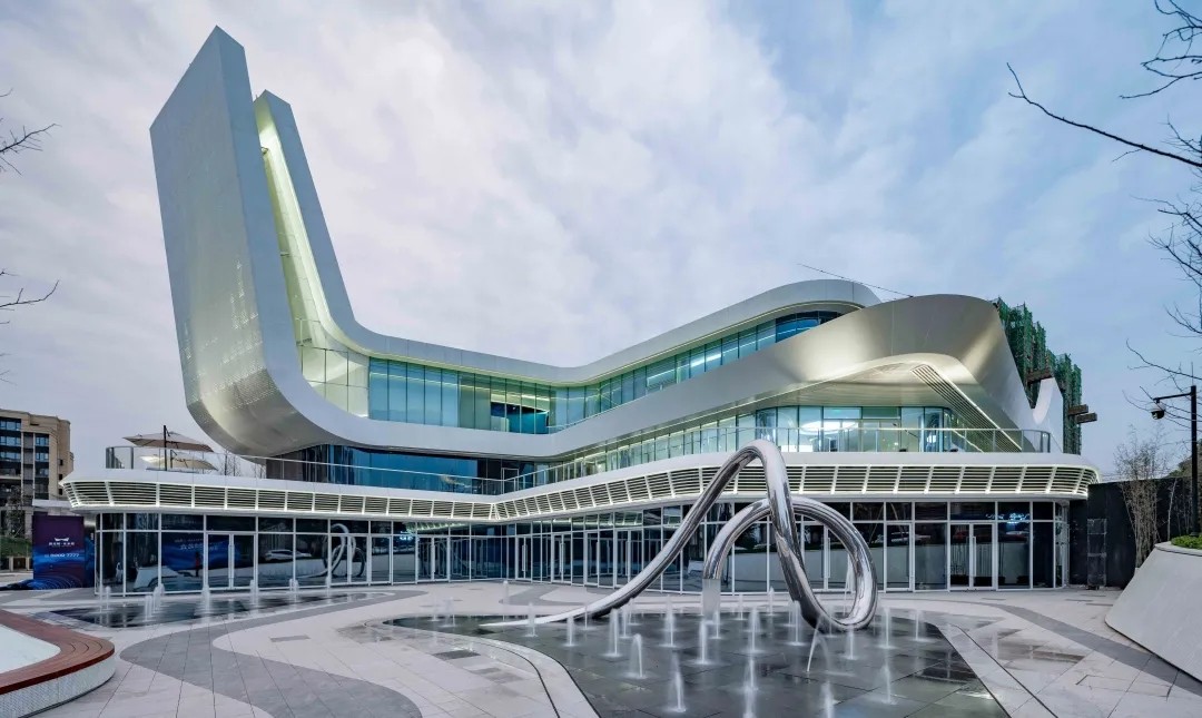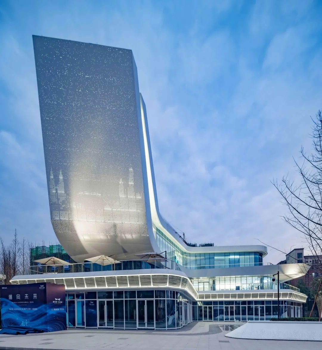 重慶,一個長江上游的山地城市,雨水充沛,孕育了青翠欲滴的森林城市風情。接到項目之初,場地建筑已初具雛形,高挑的屋檐翹板,簡潔流暢的設計線條,突顯出超現代的表現手法。