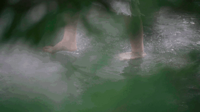 這里的草兒竟也成了云朵的樣子,一簇簇軟軟綿綿,踏著踏板,水滴們爭先恐后的聚集到云朵中,等待云層慢慢變厚,就真的下雨了。地面的水映著天空的云,像是天地間的兩朵云有了連接線。