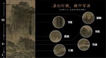 “溪山”題材很多大名家都畫過,一千個人心中有一千座溪山。范寬的“溪山行旅圖”描繪幾名旅人在宏大的自然山水間行走跋涉。畫卷采用三段式布局,巍峨的山峰占據(jù)了畫面三分之二,與前景渺小的旅人形成對比。以其渺小、短暫見證山川的無垠和永恒,從中我們領(lǐng)悟了對自然的敬畏和處世的豁達。