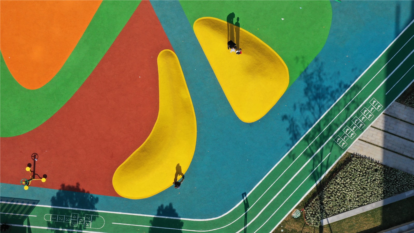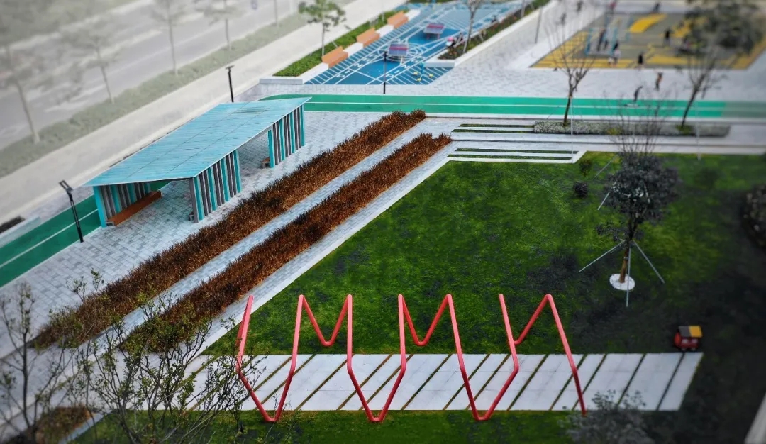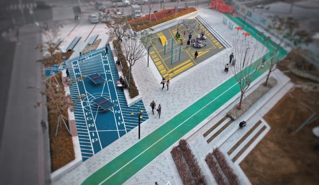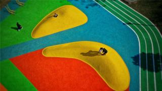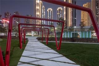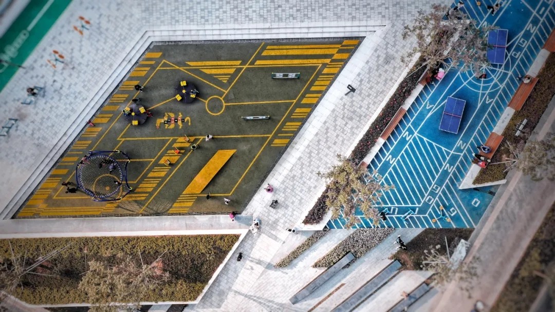 多功能活動場的設(shè)計,依舊延續(xù)線性公園的特質(zhì),以鮮明的色彩劃分區(qū)塊,還原了運(yùn)動本身的熱血和活力,將最鮮活熱絡(luò)的生活方式呈現(xiàn)在每一個人面前。