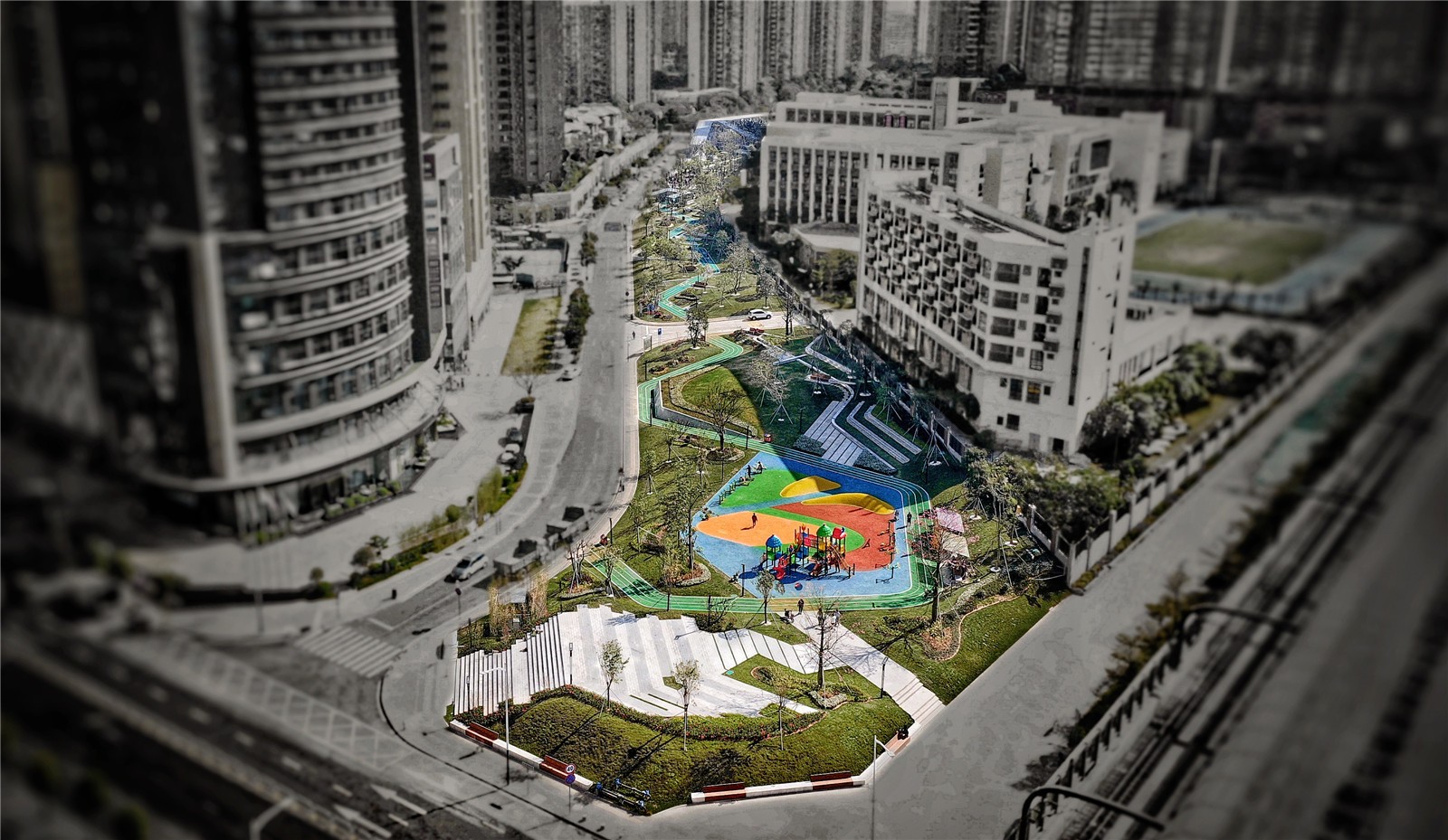 ▲南區(qū)公園實景俯瞰