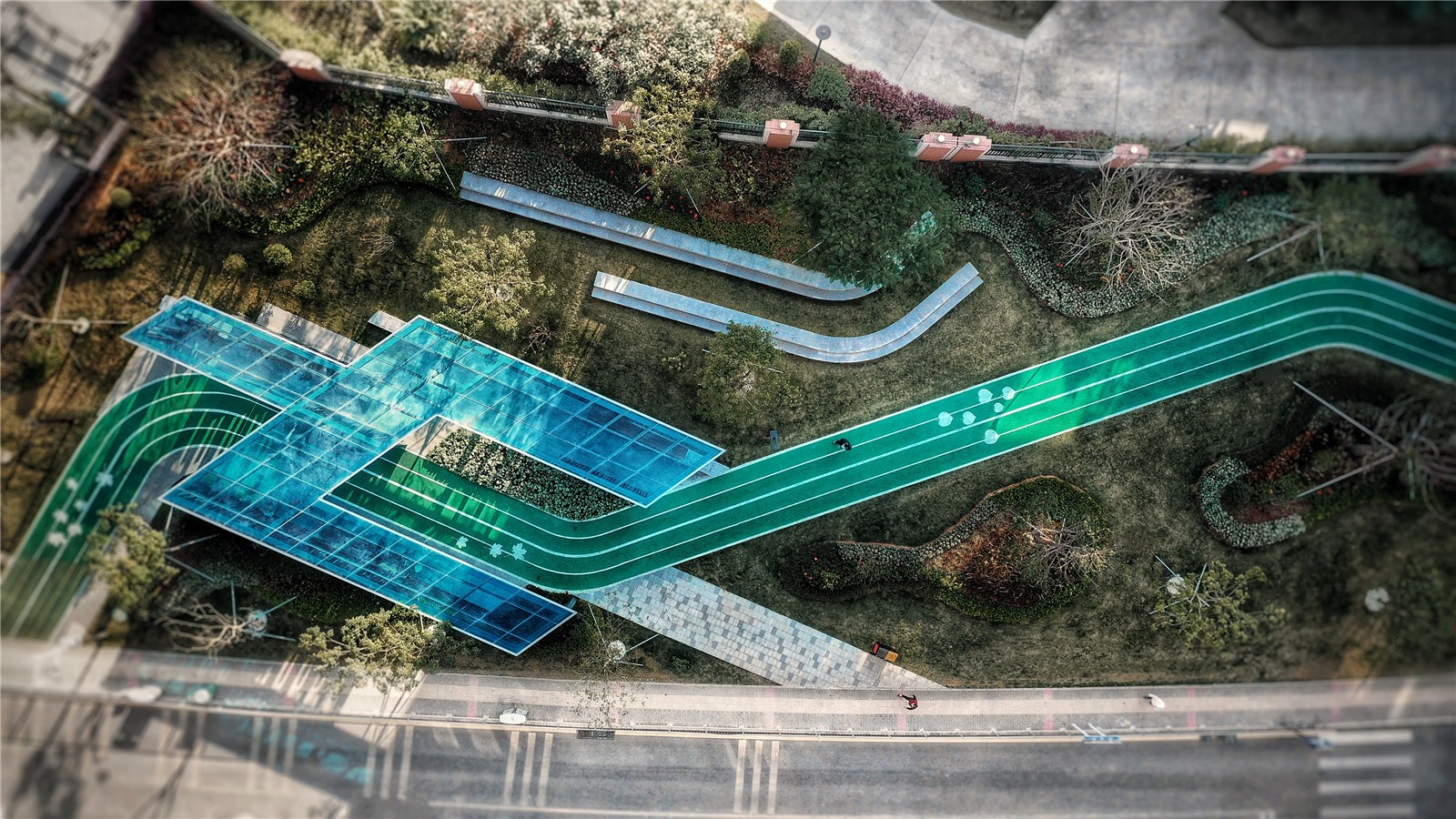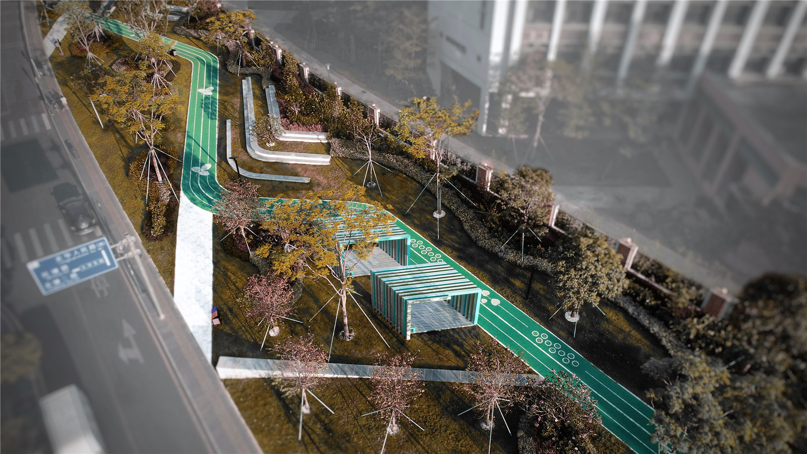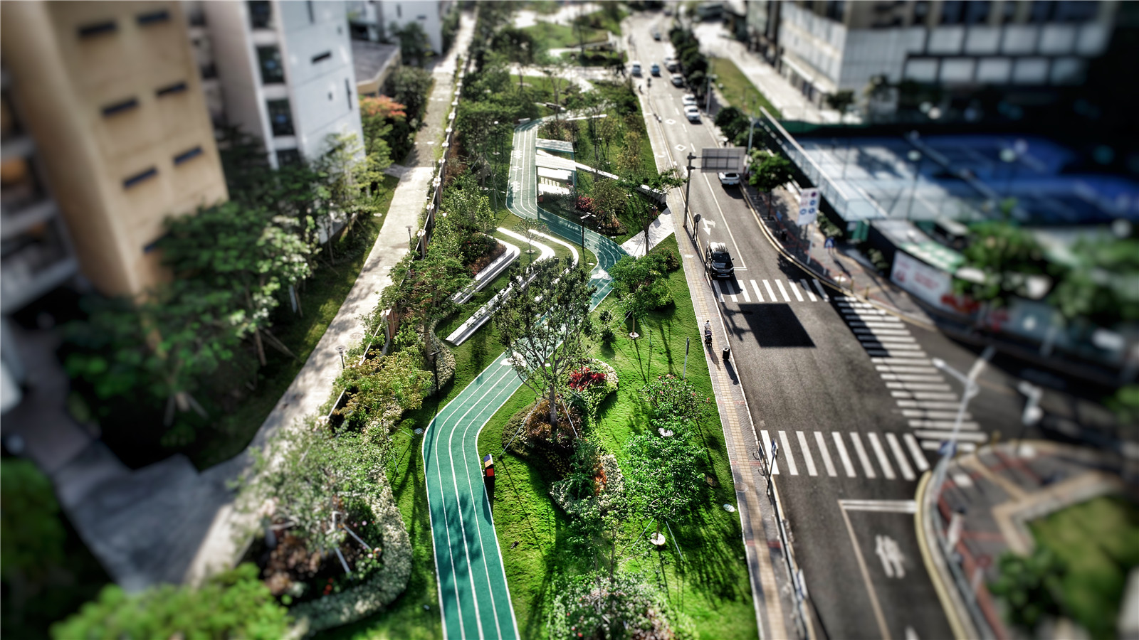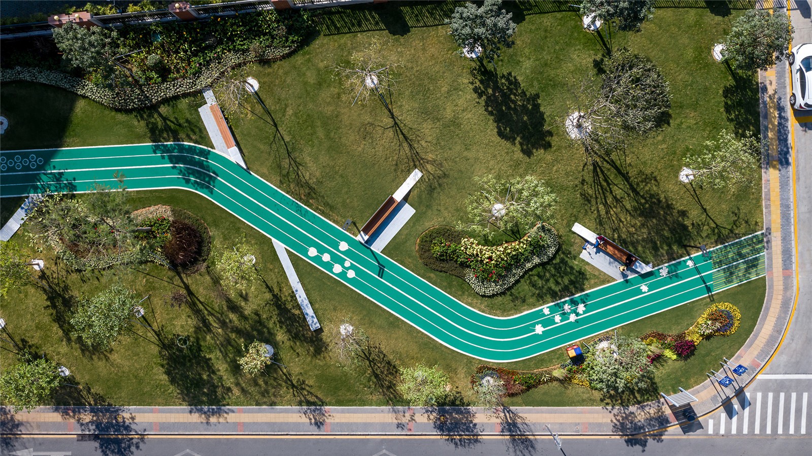 綠色跑道圖案,豐富人行體驗Green running track patterns, a dynamic pedestrian experence.jpg