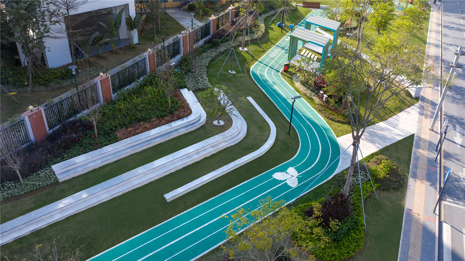 SED植物設(shè)計團(tuán)隊對公園的種植方案進(jìn)行了精心安排,選用適應(yīng)性較強(qiáng)的本土植物,栽植各個季節(jié)的應(yīng)季植物,以自然組團(tuán)式的方式打造觀賞性植物,精致分布于跑道兩側(cè),呈現(xiàn)在來往的人面前,打造出四時均綠意盎然的景觀效果。