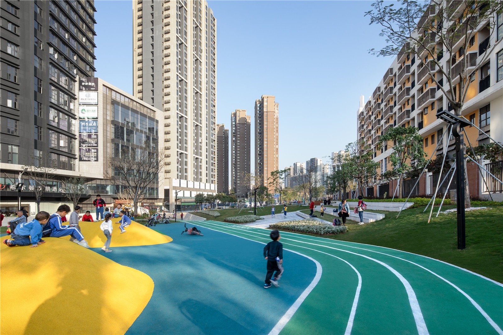 這里還設(shè)有不同年齡段的娛樂設(shè)施,是身體能量釋放的絕佳之處。被疫情隔斷的熟識與快樂在這里,也能被找回。