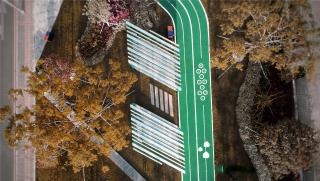 跑道的設(shè)計將龍華綠廊三期的不同功能分區(qū)合理地銜接起來,保證人流動線的通暢,也帶來了“步移景異”的游覽體驗。