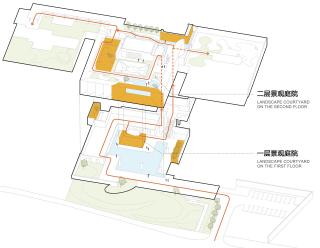 伴隨著參觀的步伐,空間節(jié)奏張弛結(jié)合、抑揚(yáng)有度,景觀庭院與建筑有機(jī)地結(jié)合在一起,穿行其中,步移景異。