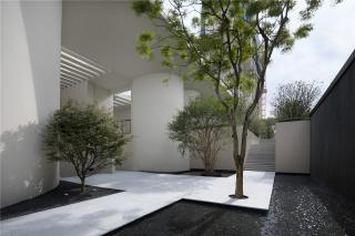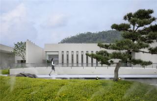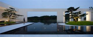 The architecture lies against the rolling curve of natural mountainous terrain, blending with the mountain range and obeying the rules of nature. The landscape design artfully creates a 5m landscape waterfall, whose majestic water mist covers the original wall. Hearing the water’s bubbling and watching the tree shadow wave, it seems one has entered a world where nature and humanities coexist and a holy space with simplicity.