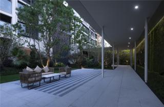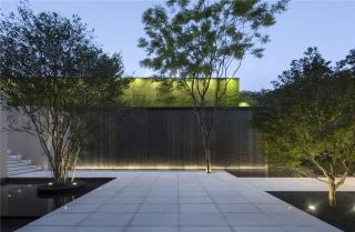 During this landscape design, designers continued the auspicious connotations on this site, hoping that residents can find a sense of belongings and experience a sense of happiness. The optic-fiber water curtain surrounds the atrium as if a waterfall that pours down. Its dreamy and lively effect adds stronger natural characteristics to the overall landscape. An expansive eternal water view is created in the courtyard, which vividly reflects the gloss and flows of water. The design of “l(fā)ight chasing the mountains” combines traditions and innovations, aiming to present artistic work of humanities and nature through art and technology.