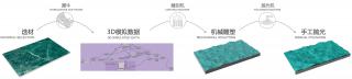 △“永恒之水”利用復(fù)雜的3D軟體模擬出水面被風(fēng)吹拂的連綿波浪,然后使用機(jī)械雕塑輪廓,再手工拋光讓表面達(dá)到粼粼波光的逼真視覺(jué)效果,需要耗費(fèi)大量的時(shí)間打磨成型,體現(xiàn)的不僅是工匠精神,也是對(duì)細(xì)節(jié)的執(zhí)著與追求。The view of “Eternal Water” simulates continuous waves lifted by the wind through complex 3D software. Then an outline is sculptured through machines and polished manually to reach a realistic visual effect of shiny ripples. Polishing the modeling through much human effort reflects not only the spirit of workmanship but also persistence and pursuits of details.