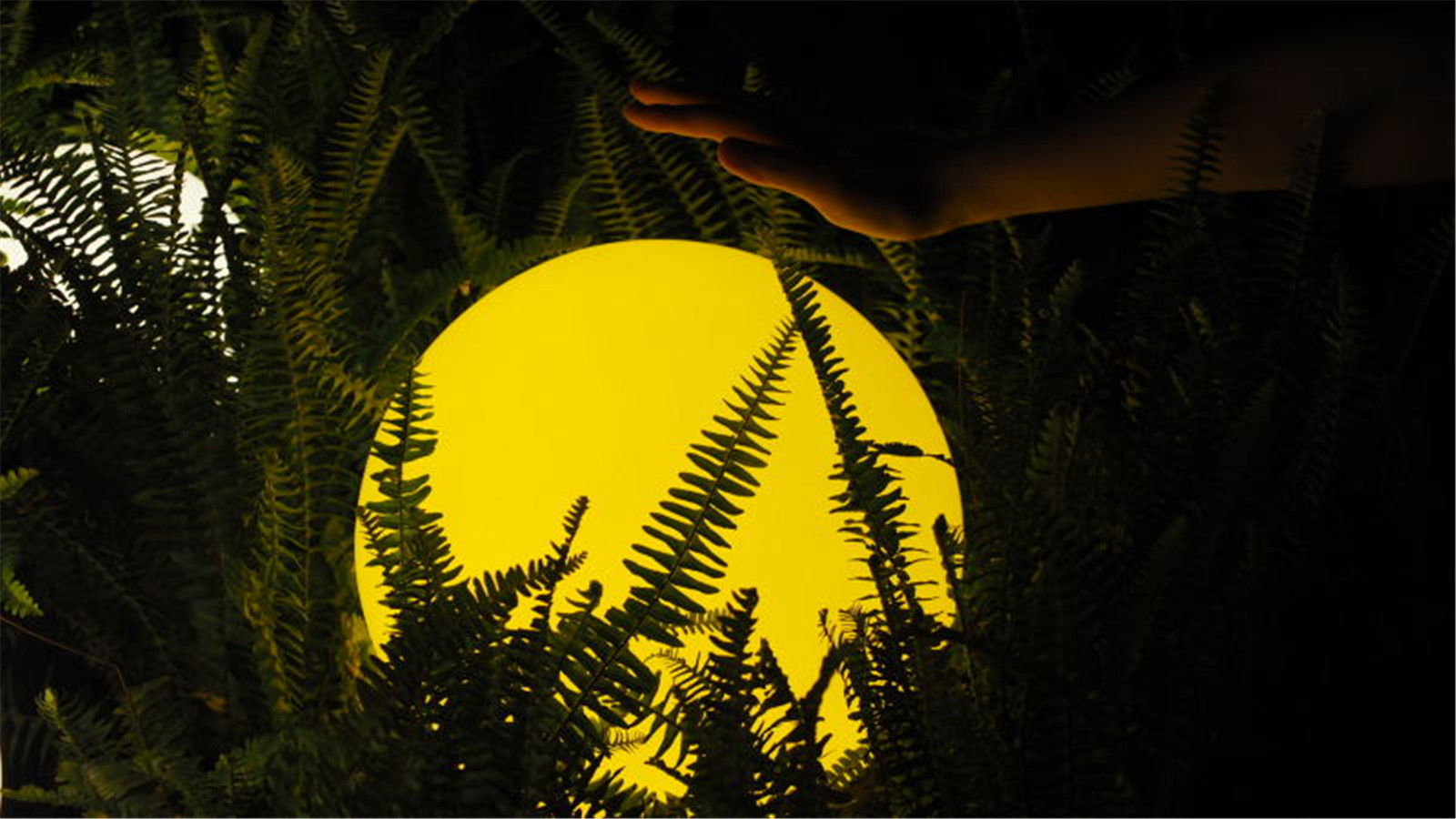 用球狀燈與蕨類植物模仿螢火蟲(chóng)卵在苔蘚叢中的生活環(huán)境。