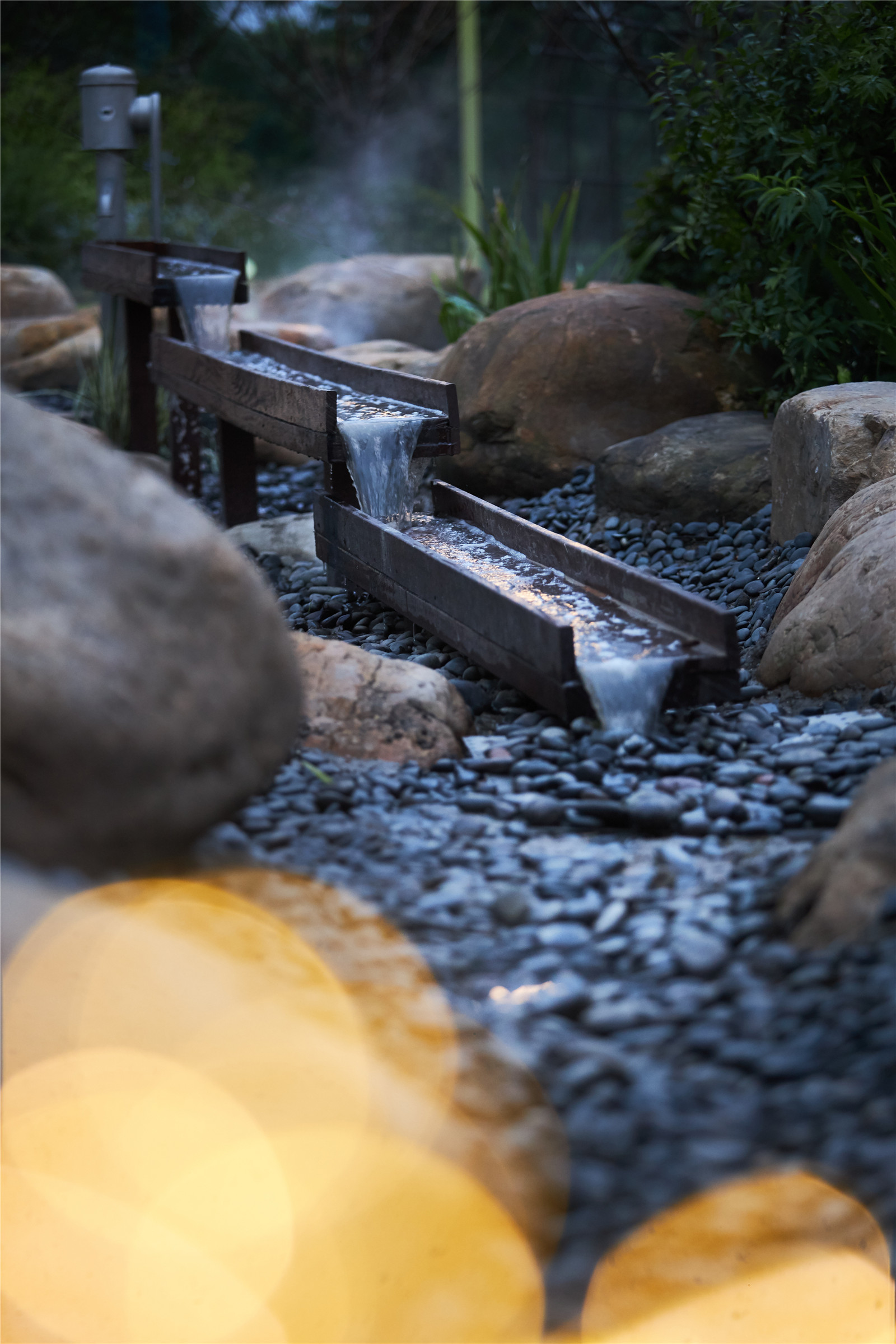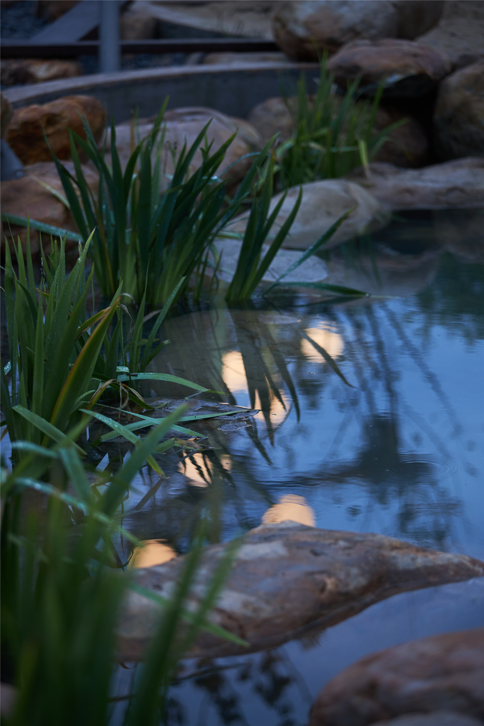 設(shè)計(jì)中延伸介紹了水在自然界中的重要性,通過(guò)霧森、旱溪、的手法表現(xiàn)水在自然界中不同的存在方式。青蛙水池中配置了豐富的沉水、浮水、挺水植物,希望吸引更多種類的蛙類來(lái)這里棲息。