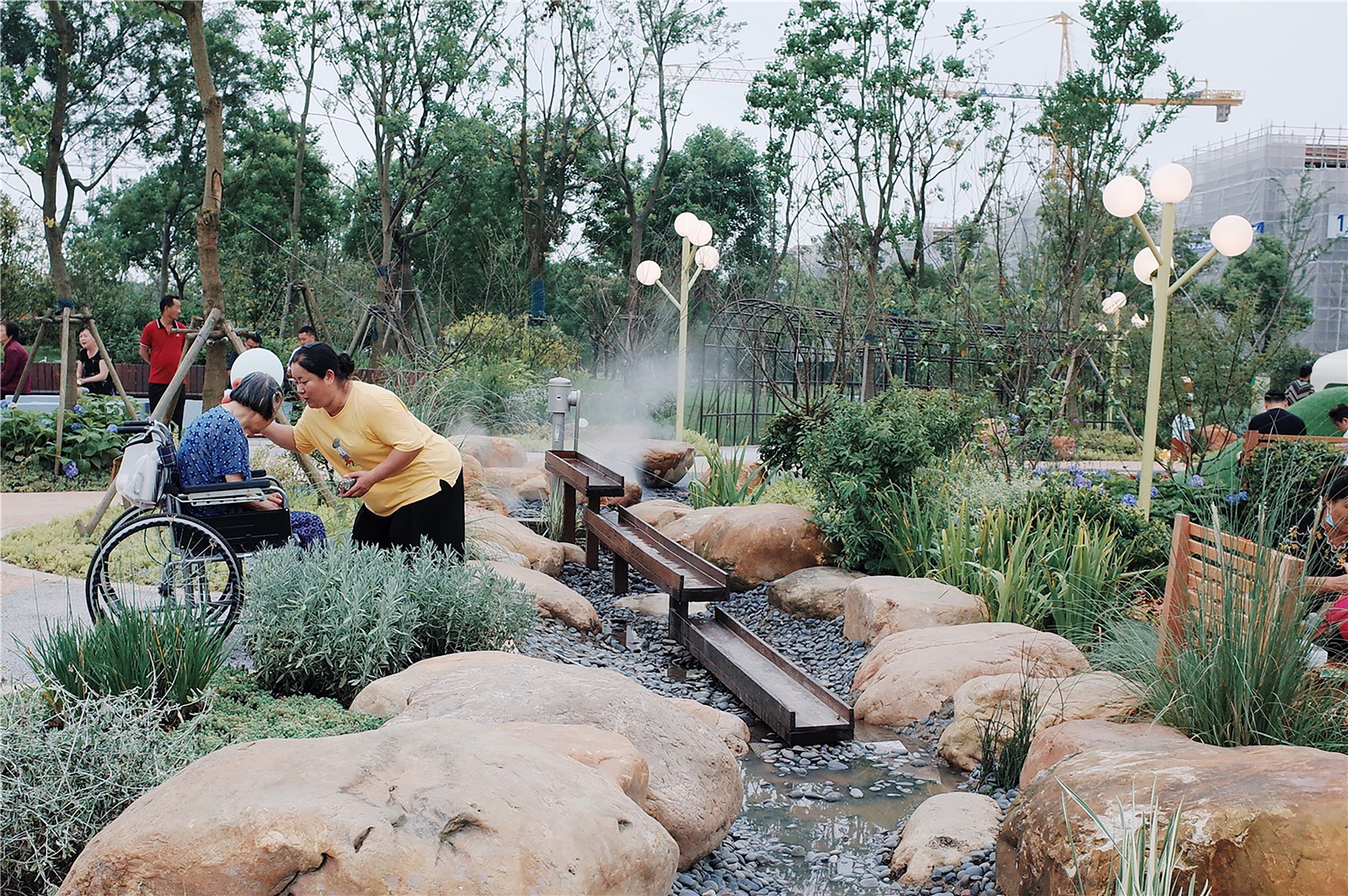 The design of the health care area pays attention to the spiritual needs of the elderly and hopes to create a place where the body and soul are endowed with a sense of security, comfort, belonging, respect, and self-worth through landscape design. Starting from the daily scenes of the elderly, the power of nature is added, so that the elderly can learn, depending on, provide for, enjoy, and protect the elderly here. The design is aimed at the behavior pattern characteristics and physical and mental needs of the elderly, and the Wuyue Garden, Gardening Experience Garden, Herb Garden, Healing Trail, and other areas are implanted in the space to give the elderly a garden experience that is close to nature and physically and mentally happy.