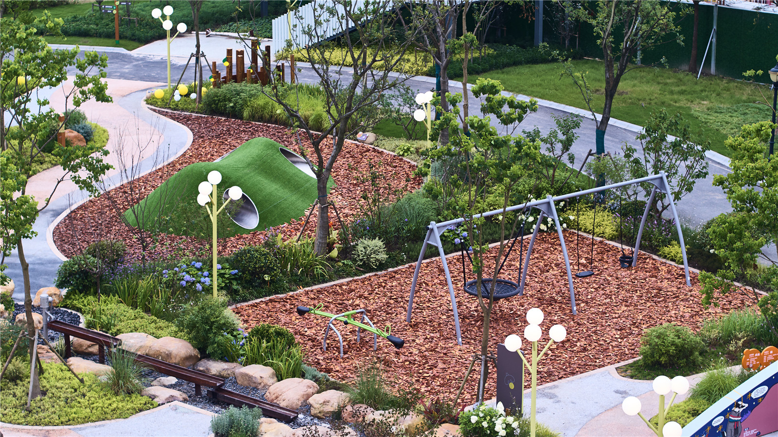 The parent-child amusement area is based on the theme of the native star species of fireflies, the yellow-veined fireflies, with the four metamorphosis processes of the yellow-veined fireflies’ eggs, larvae, pupae, and adults as the mainline. The fireflies are connected in the natural environment as umbrella guards. "Neighbors" such as earthworms, garden spiders, dogs, white-headed bulbuls, fireflies, and decorated frogs. In the overall landscape narrative, natural species are personified, and the habitat elements of their "neighbors" are refined, and they are transformed into interesting and interactive landscape nodes through space design techniques. In addition, combined with landscape design, a series of popular science signs, guidebooks, habitat manuals, and a series of activities that guide parents and children to participate in interaction have been produced. It is hoped that these contents will guide community park users (especially children) to pay attention to the nature around them, understand the importance of habitat, and promote the link between people and nature in community activities.