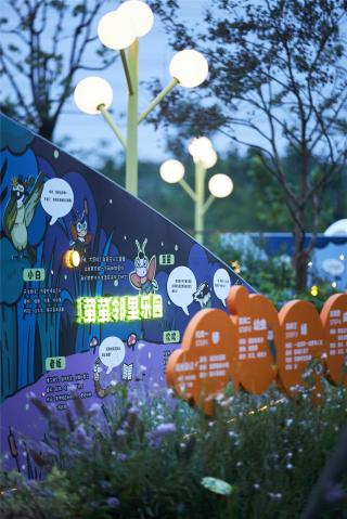 Relying on the original topography and ecological base, Zhuanghang Park takes the four metamorphosis processes from the eggs, larvae, pupae to adults of the yellow-veined firefly as the mainline, imitating the flight path of the yellow-veined firefly, connecting the fireflies in the ecological environment. "Men.