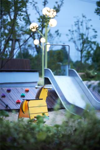 The existing site is transformed from a waste landfill. There are high-voltage lines above the site and liquefied oil pipes are buried underground, which restricts crowd activities and landscape planting. Based on this situation, in the design, the east side of the site is set as an ecological section focusing on ecological conservation, and the main crowd activities are placed in the community section on the west side of the site. Taking into account the needs of the applicable people in the surrounding residential areas and community nursing homes, and comprehensively considering the daily activities of the whole age group, the community section is divided into the health care area/parent-child play area/outdoor sports area/cute pet paradise. The first phase of the project focuses on creating a parent-child play area with the theme of the local star species fireflies, and a recreation area that stimulates the elderly's sense of social belonging and mental health as the starting point.