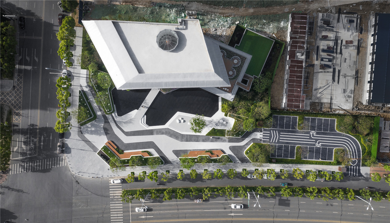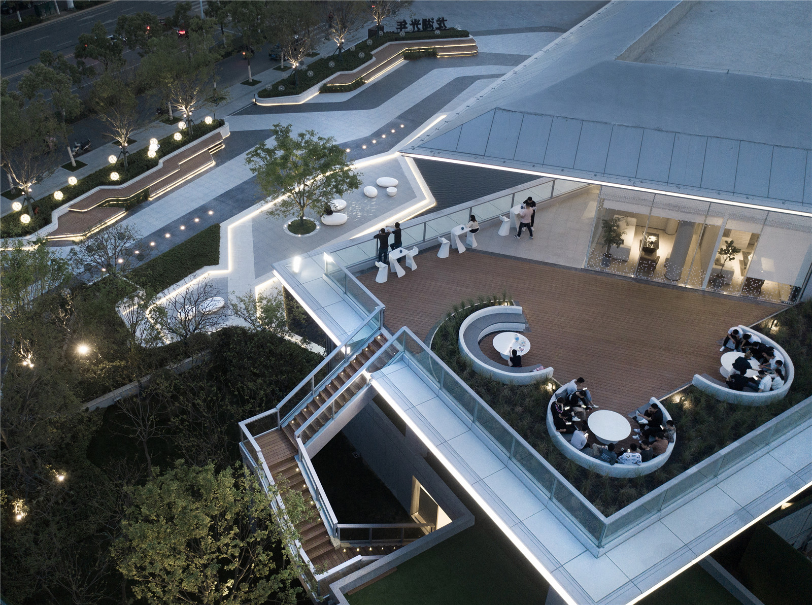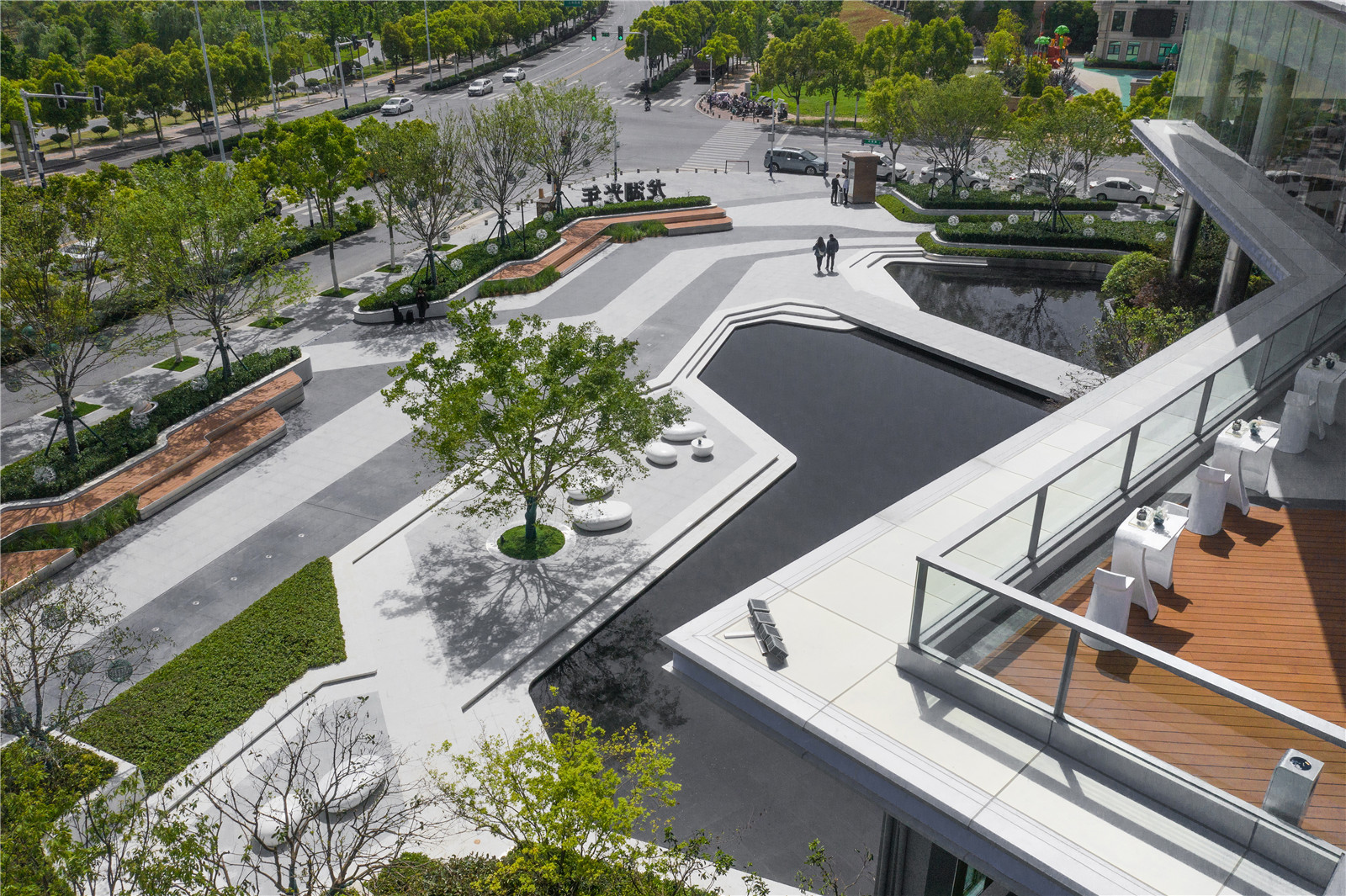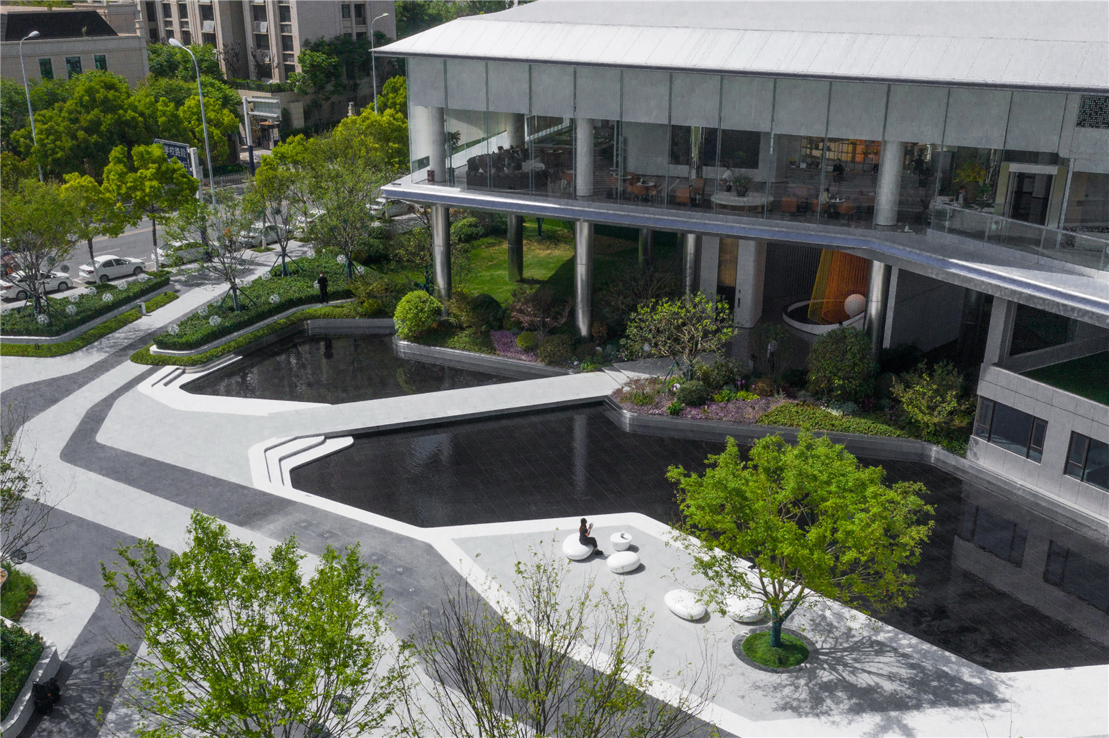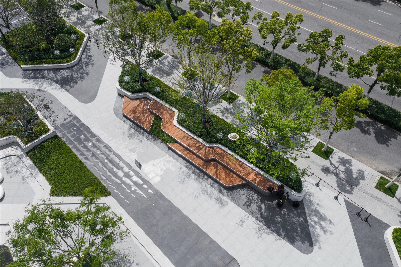異形樹池序列排開,營(yíng)造尊貴禮遇之感