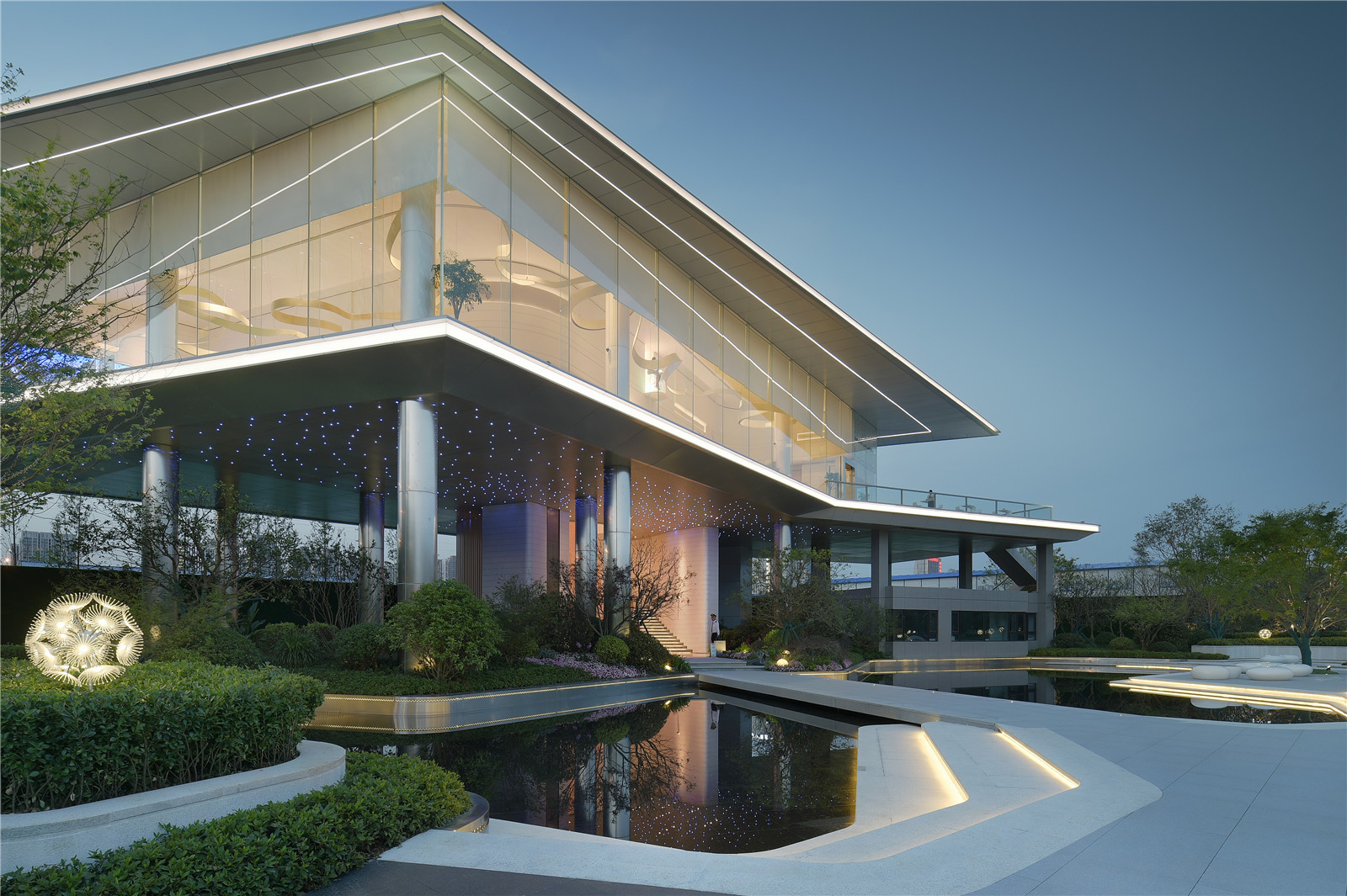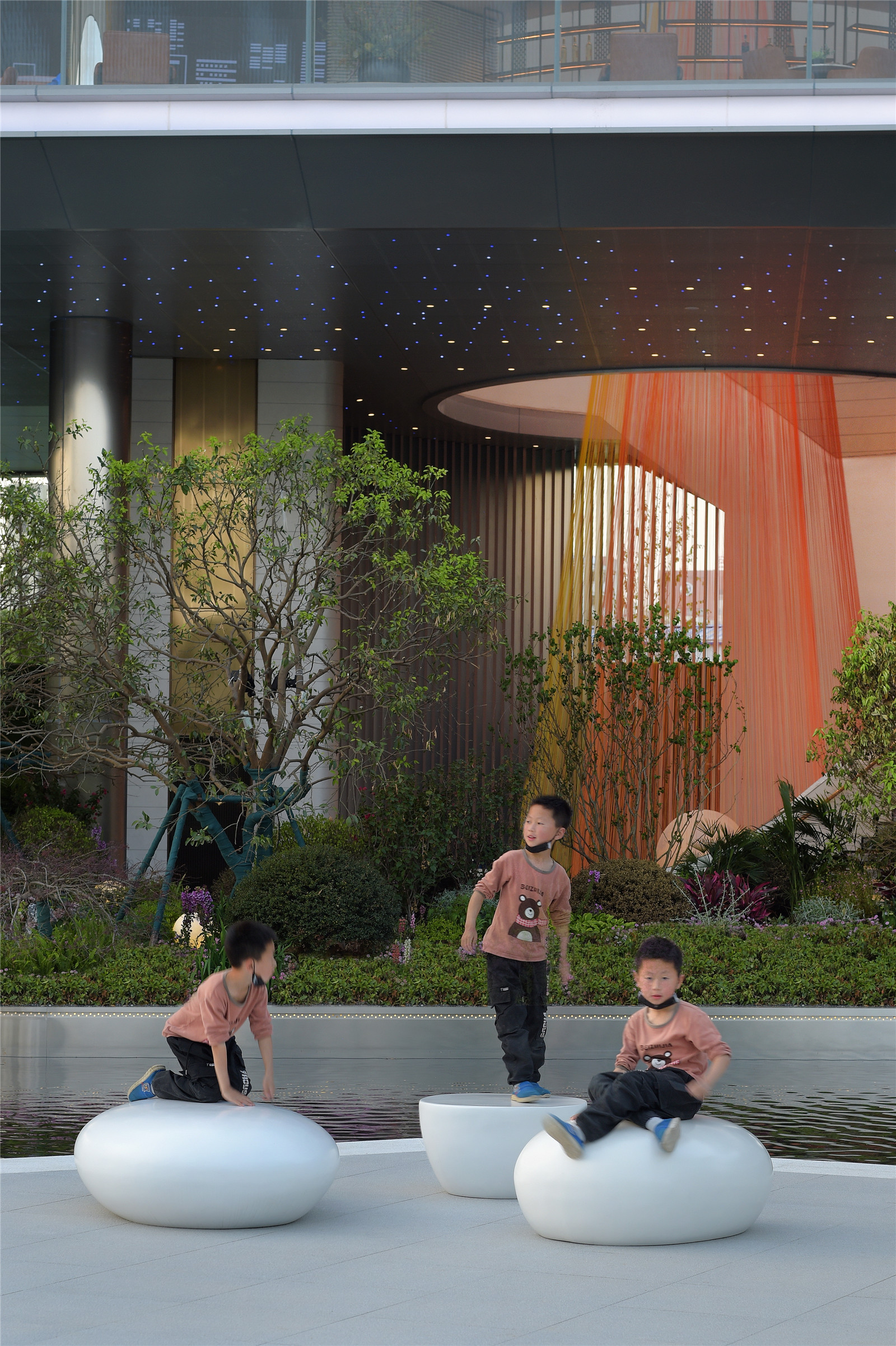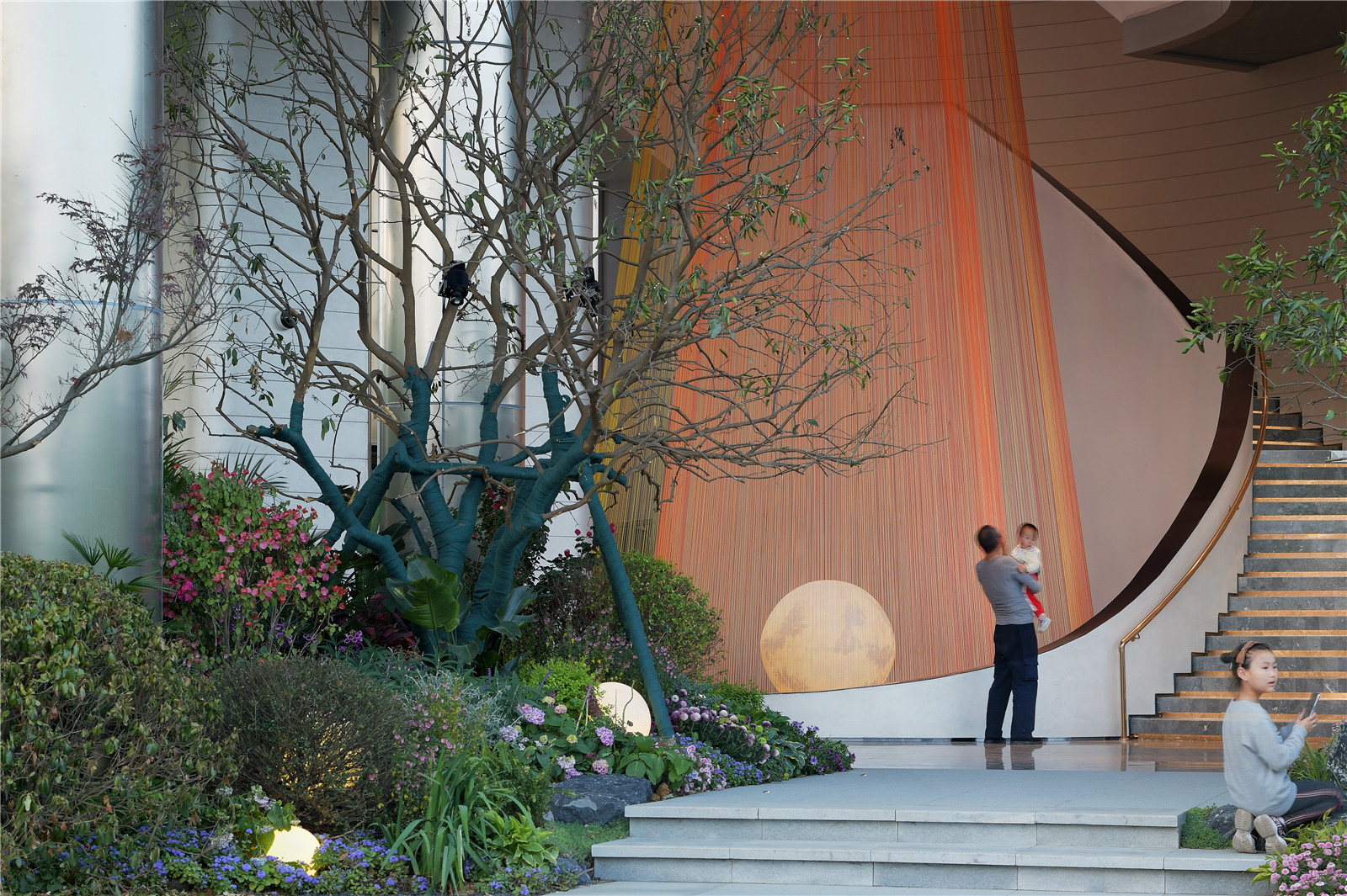 龍湖光年的光影LOGO佇立為景觀墻,隔絕開外界喧鬧的環(huán)境,