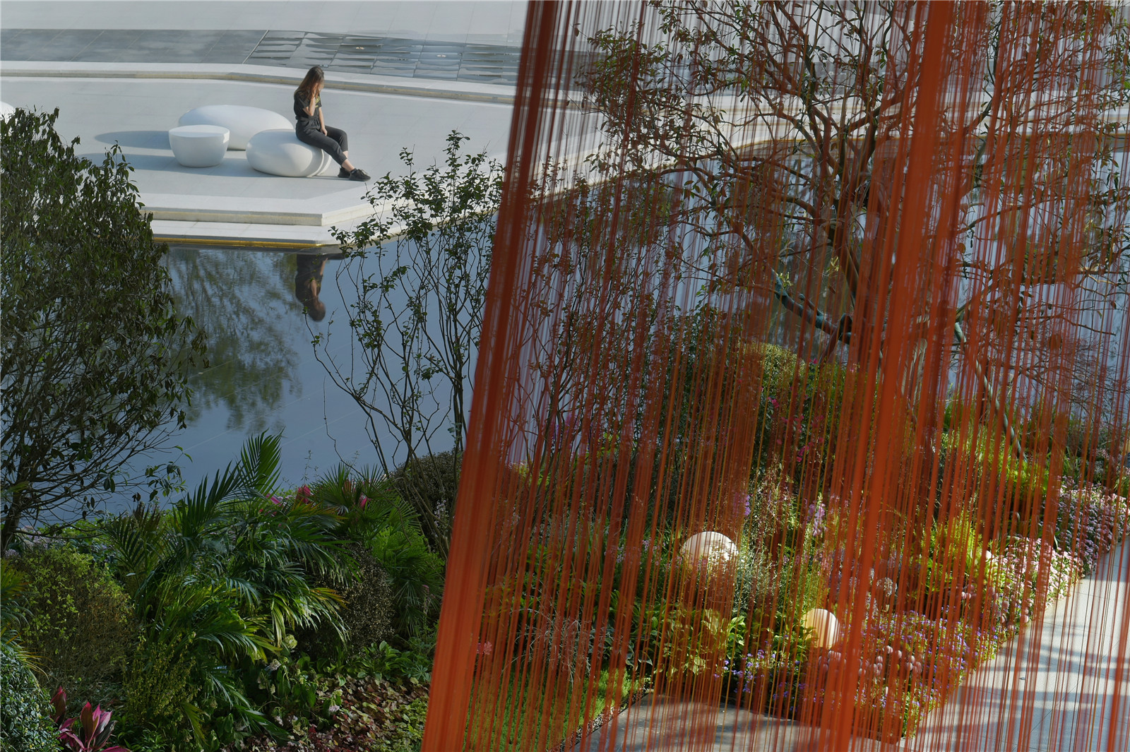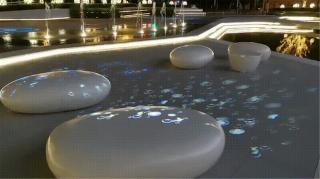 飛瀑、鏡面、建筑、樹影各色景觀錯(cuò)落有序,