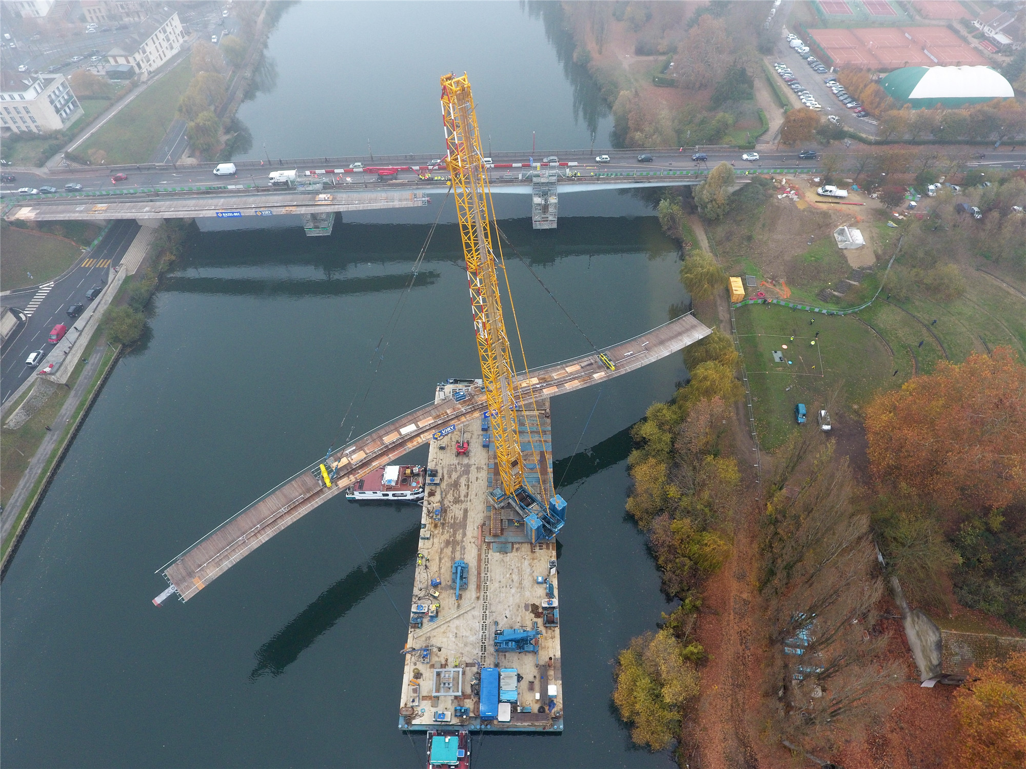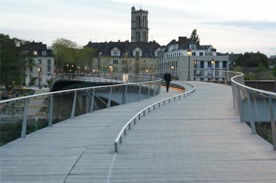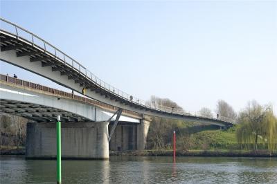 2012年,Mantes與Limay市政府共同舉辦設(shè)計(jì)競(jìng)賽,建立兩個(gè)市鎮(zhèn)間的可持續(xù)交通。伴隨著步行橋的開(kāi)放,該項(xiàng)目的第一階段宣告完成;新的步行橋跨越兩岸,連接了兩個(gè)歷史街區(qū)。人們可以從Mantes的圣母教堂出發(fā),通過(guò)步行橋走過(guò)河岸與河心島,而后繞過(guò)一個(gè)小型露天劇場(chǎng)(Theatre de Verdure),再通過(guò)“舊橋”到達(dá)巴黎大街,并沿路直抵市中心。
