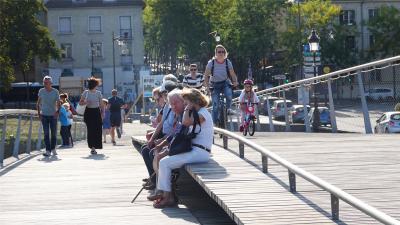 The project for a link dedicated to sustainable mobility between Mantes and Limay, supported by the two municipalities and the region, was the subject of a competition in 2012. The first phase of the work was completed in 2019 with the opening of the footbridge spanning the arm of the river, adjacent to the former royal city, and the new link is part of an urban route linking the historic districts of the two towns. From the foot of the Gothic collegiate church, the footbridge crosses the first arm of the river, runs along the island, skirting a small open-air theatre ("Théatre de Verdure"). You then reach Limay by taking the Old Stone Bridge and picking up the Rue de Paris, which leads to the town centre.