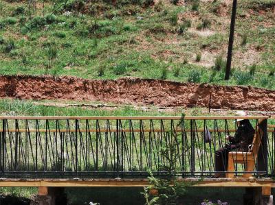 白楊溝村龍鱗大白楊片區(qū)的公共空間在建成后為村民提供從室內(nèi)到戶外公共環(huán)境散步、小憩、駐足、游戲、集會、交往所需的系列場所。場所的戶外家具多選用飲品塑料瓶、拆掉的老舊欄桿等廢棄物加以利用,空間界面則以鋼木、紅磚、山石材料在自然環(huán)境中的運用來強化人工與自然的空間界定,爭取為村里老人、婦女、兒童群體創(chuàng)造更多有趣的活動場所。