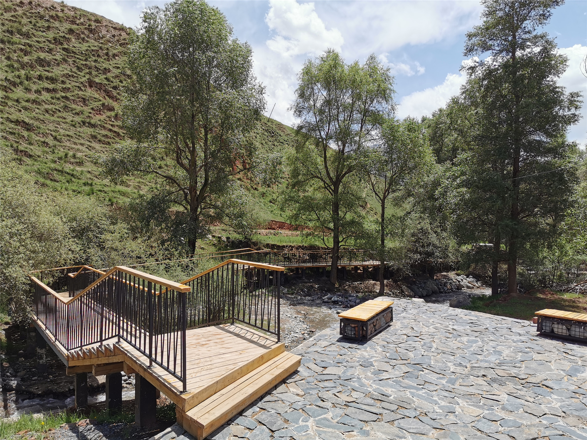 When thinking about the future scene of public space in Populus alba village, we put forward two levels of scene construction: "poetic nature, neighborhood comfort". The inspiration of the scene design comes from the traditional garden making method. With the nearly hidden plank road, a series of walking paths are built from the village entrance to the poplar forest and then to the highland barley field to show the dragon scale poplar, which can be used to create a deep view by the mountain forest; sometimes lying across the water, sometimes winding into the forest, fascinating in the natural poetic scene among the snow mountain, Danxia and poplar forest.