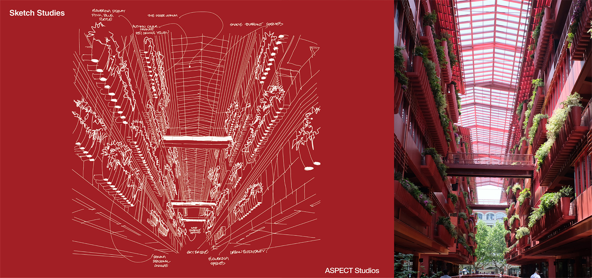 In early 2018 CIFI appointed ASPECT Studios to the project team to deliver the landscape architectural and living facade design of this iconic landmark building by Jean Nouvel. Embracing the projects vision started with an appreciation of the site’s context, culture, and community being a few blocks way from our Shanghai studio a place we are very familiar with. The design was developed though Concept Design, Schematic Design, Detailed Design and reviewing of the Construction Documentation and On-Site construction.