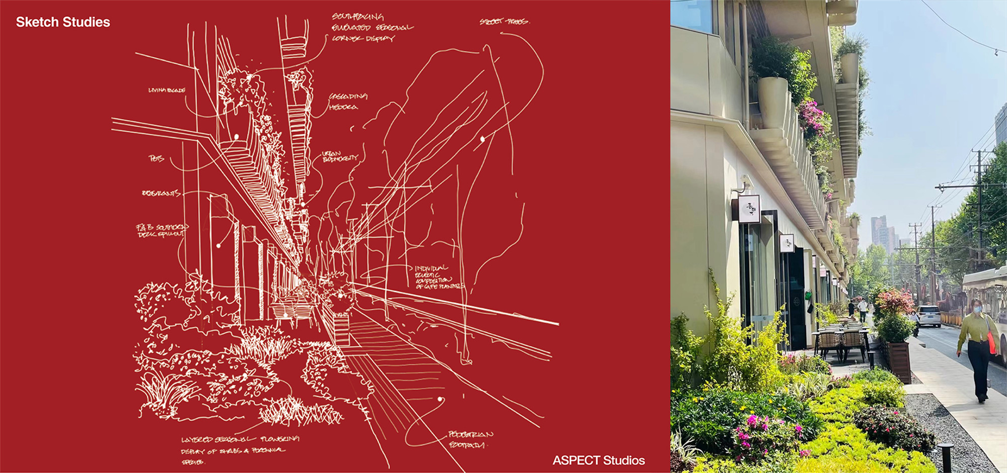 Project drawings (layout plan, design sketches, concept drawings and sectional drawings of facade flower pots) ?Aspect Studios