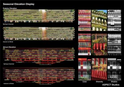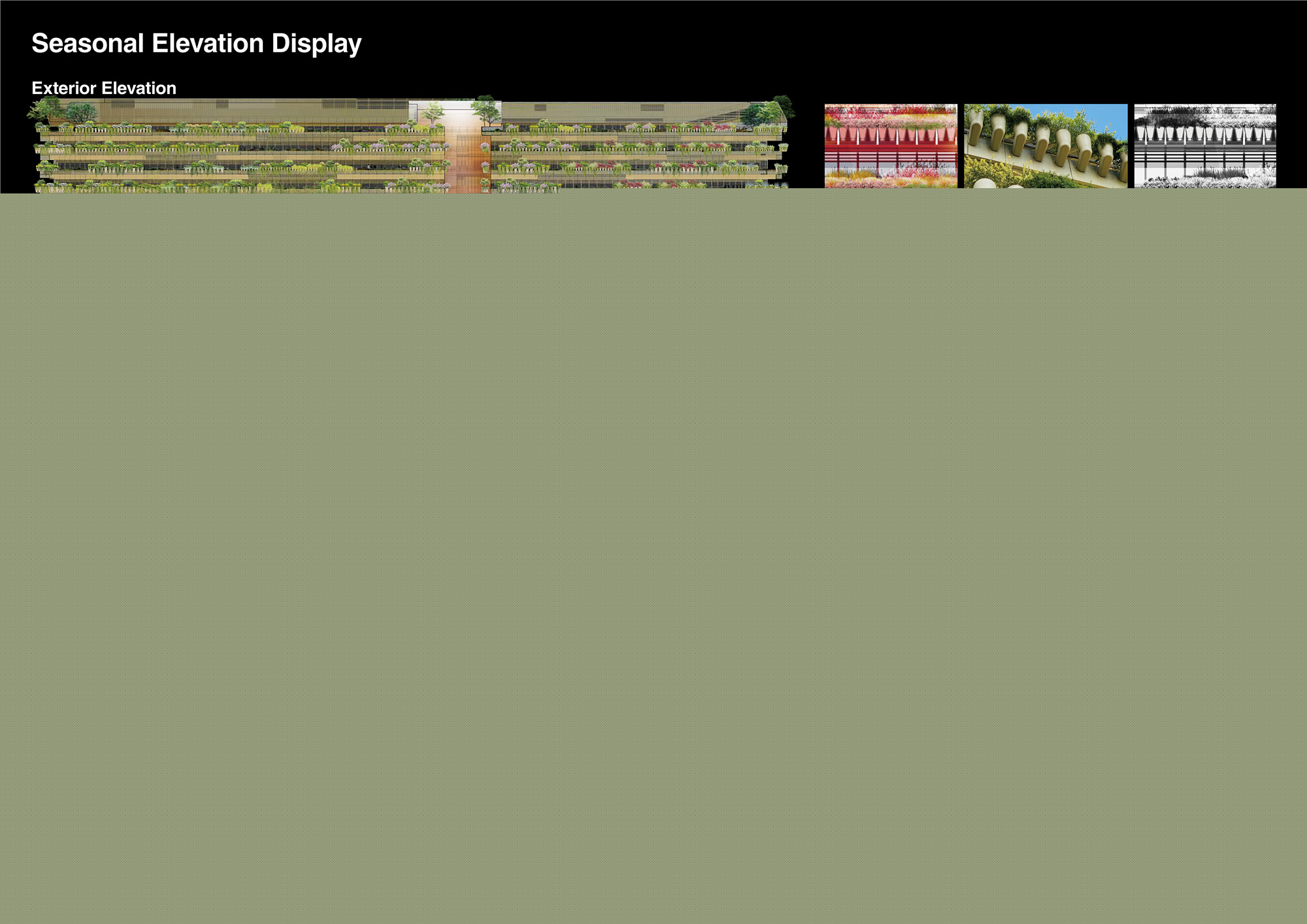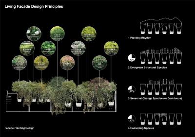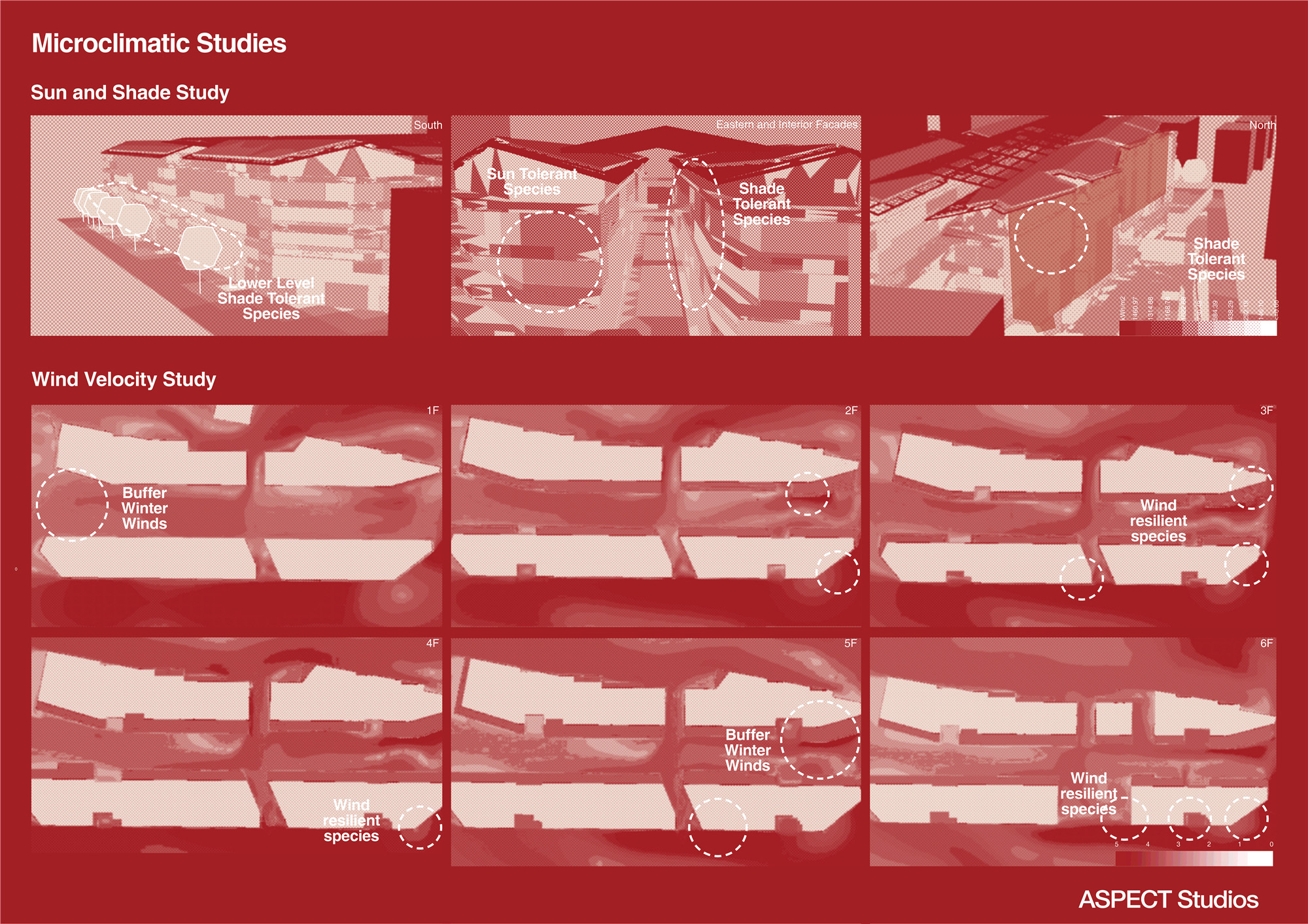 在立面設(shè)計中,整個團(tuán)隊(duì)針對于項(xiàng)目不同層高的各種微氣候條件進(jìn)行了多種關(guān)鍵的分析,用以適配到在其條件上合適的、可持續(xù)的,美觀的植物配置。