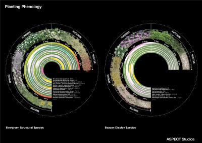 With the intent to create environment that had natural composition and rhythm both in elevation and seasonal rhythm through the months specific species were selected for their individual location, aspects, elevation. Each performing different and defined roles such as seasonal change, all year structure and flowering display.
