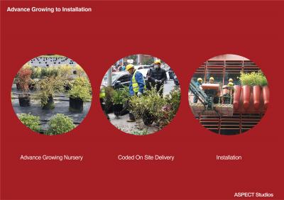 To ensure robust settling in and instant effect from day one, an advance grown nursery strategy was implemented to pre grow each pot species combination a season in advance.
