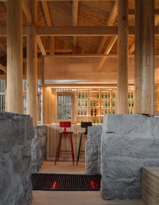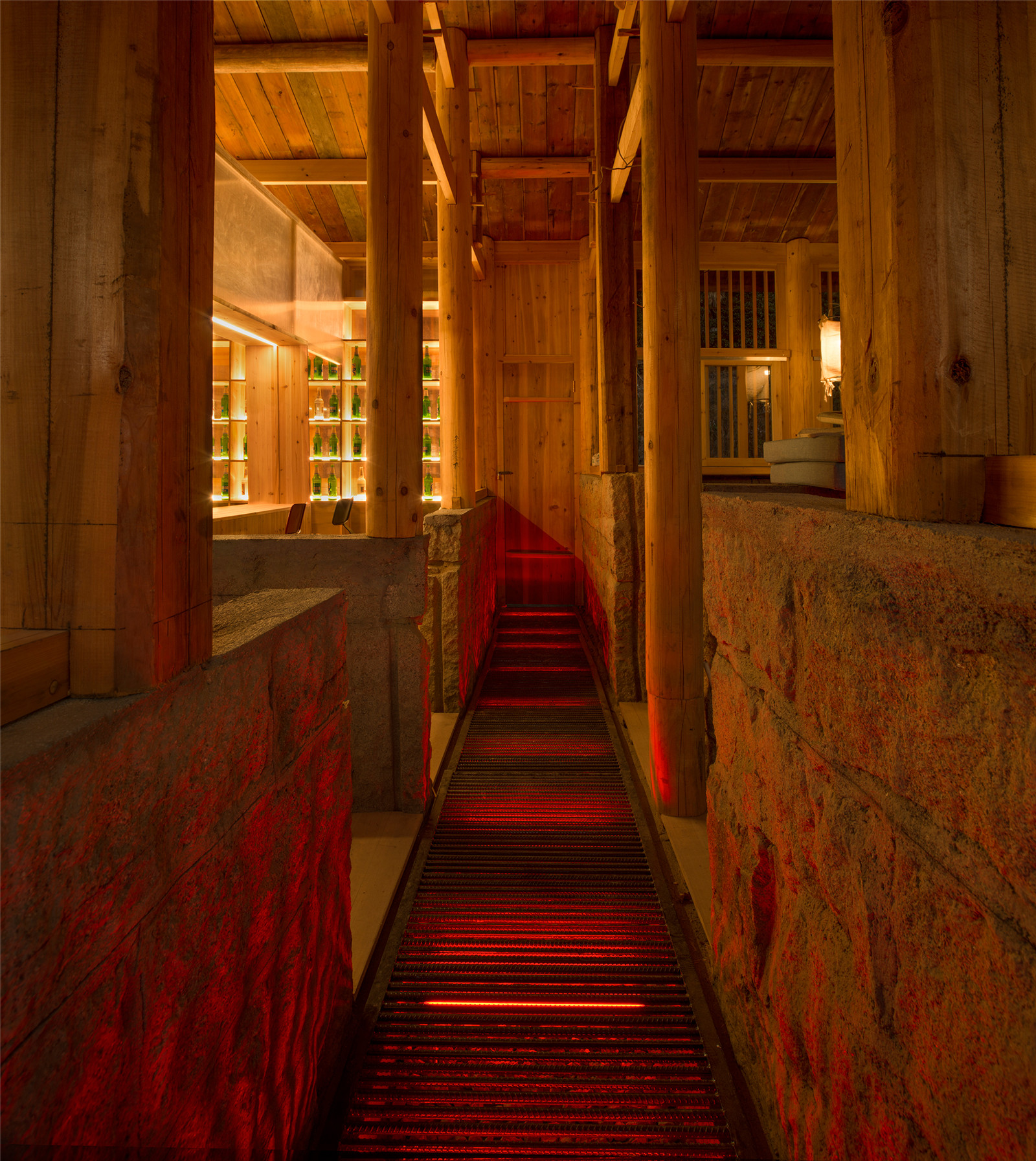 ▼設(shè)計保留了原有“圈里”酒吧內(nèi)豬圈的毛石圍墻