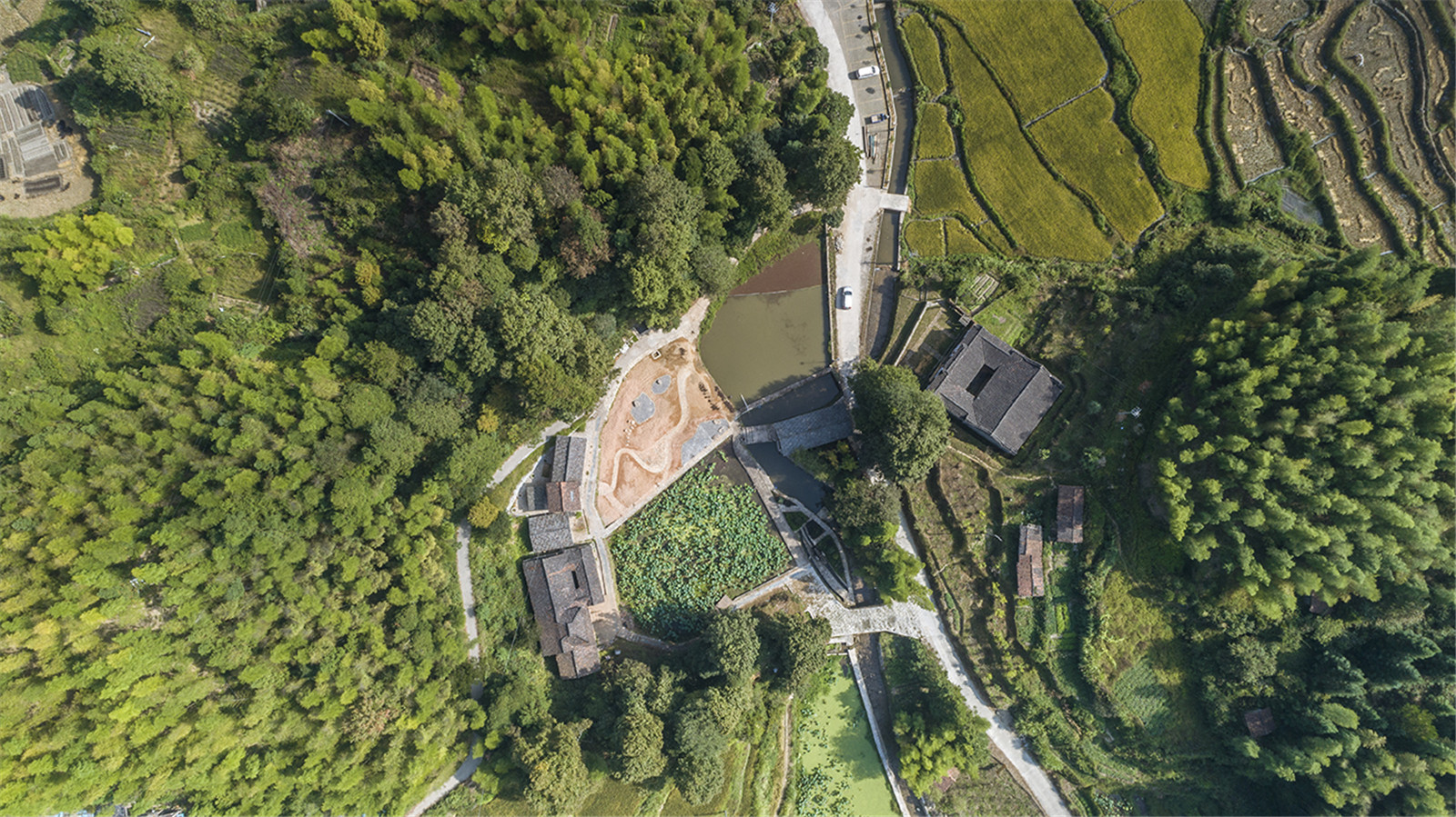 The Shuikou area is the village entrance, as well as for worship activities to ancestors and divinities. The existing buildings include the Shezumiao Shrine, the Yang’s Ancestral Temple, a gallery pavilion, a tobacco-curing house and a debris shed. To integrate with the buidlings, an ancient bridge, a magnolia tree, and lotus ponds constitute the landscape elements.