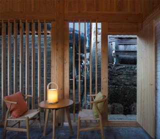 Lotus Chamber is a teahouse transformed from an old utility room. It represents ‘Being Incorruptness’ for having the same pronunciation with integrity in Chinese. This building is the most obvious one by the pond next to Tai Fu Tai Mansion. The design kept old rubble wall and only fixed non-recyclable wood structure on the upper level, then making it a teahouse by water. Users can walk through a glass door, stand on the platform and enjoy spaces over the pond with lotus, referring back to the name ‘Lotus Chamber’.