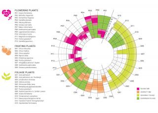 Pathways meander through a variety of landscape settings, lined with a site-wide planting aesthetic that showcases bold seasonal color, fragrance, and fruit through a mix of classic shrubs layers and flowering perennials.