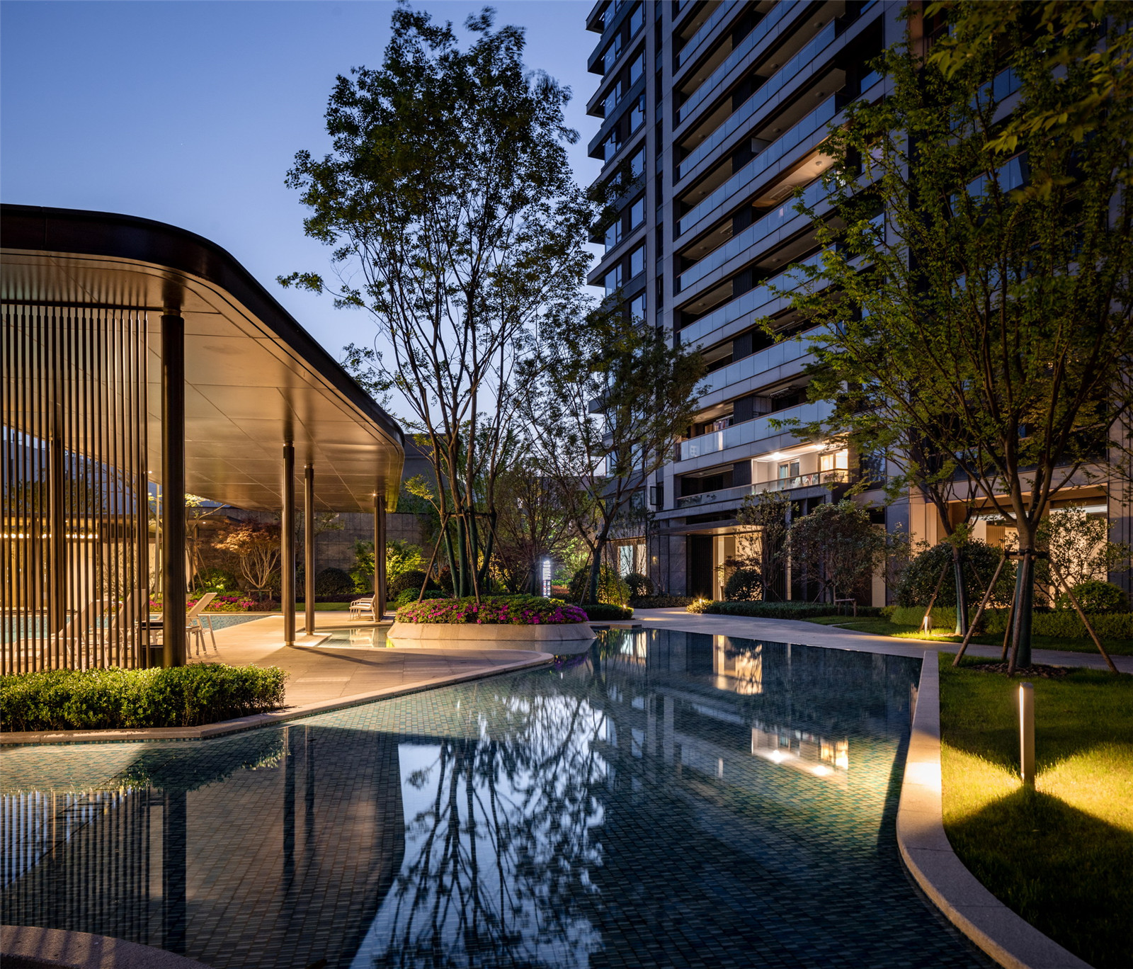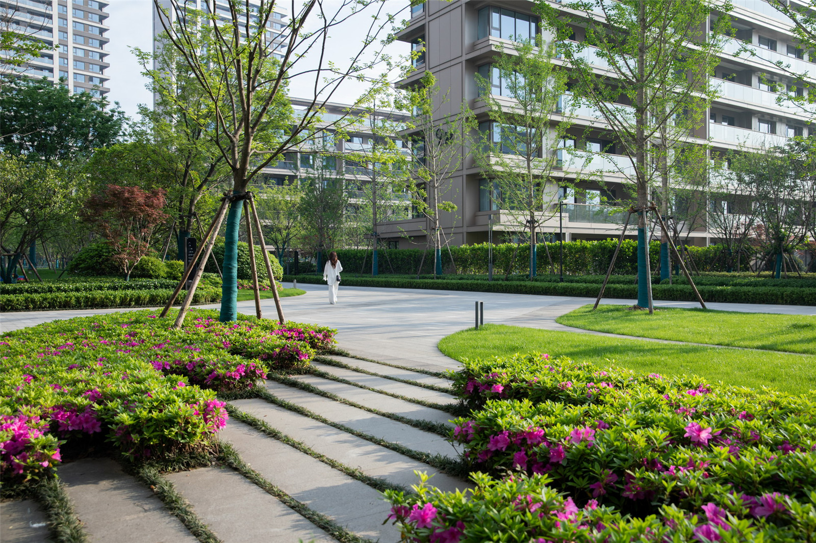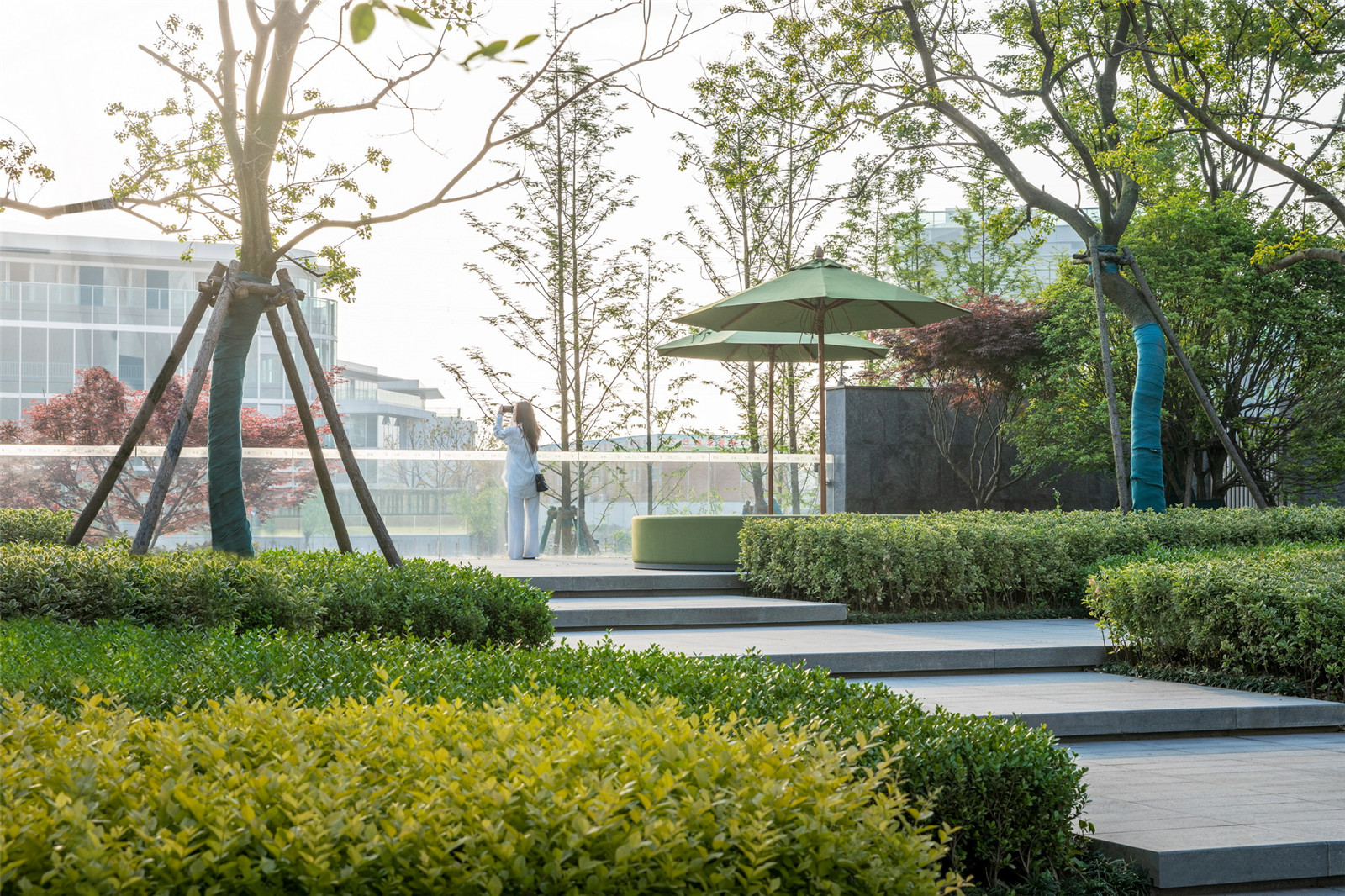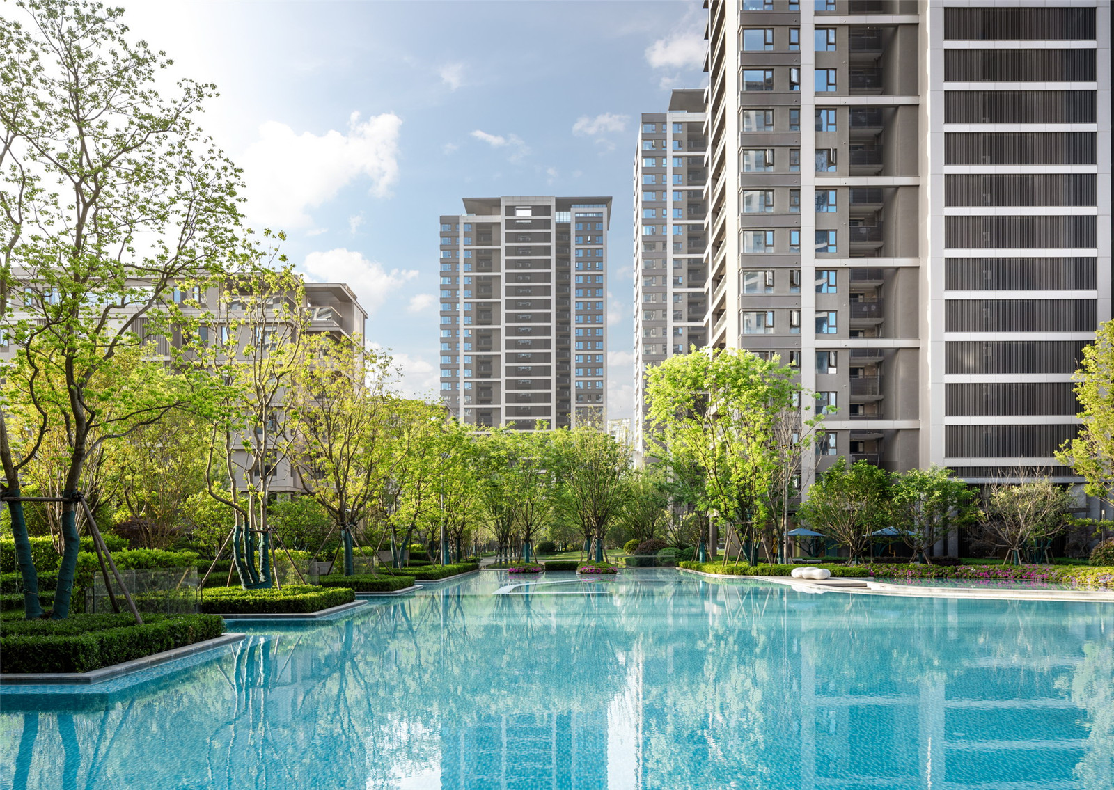 秩序排列的景觀樹,強(qiáng)調(diào)了歸家的儀式感,漫步于社區(qū)之中,聽蟬鳴風(fēng)動(dòng),讓歸家的步調(diào)輕盈。