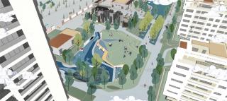 草坡的另一半是一個(gè)反坡的處理,兒童空間被藏于此,全齡活動(dòng)作為主線串聯(lián)全部的活動(dòng)場(chǎng)景,再被大鯨魚一口吞下,歡聲笑語(yǔ)隨風(fēng)游走,聚集更多人前來。