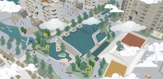 為了最小化水景空間對(duì)主入口的視線干擾,將通往云上觀景臺(tái)的道路做了下沉處理,這條道路同時(shí)承載大水景空間上的劃分,也為行人帶來一份游走在水下的樂趣。