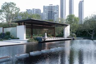 竹中窺落日,山際見來煙。隔水相望,竹風(fēng)習(xí)習(xí),開闊的湖色風(fēng)光令人豁然開朗,裊裊云煙透過亭廊升騰迷漫,傳統(tǒng)東方寫意之美與現(xiàn)代中式氣質(zhì)相融而生,凝練的湖山之美已現(xiàn)卓姿。